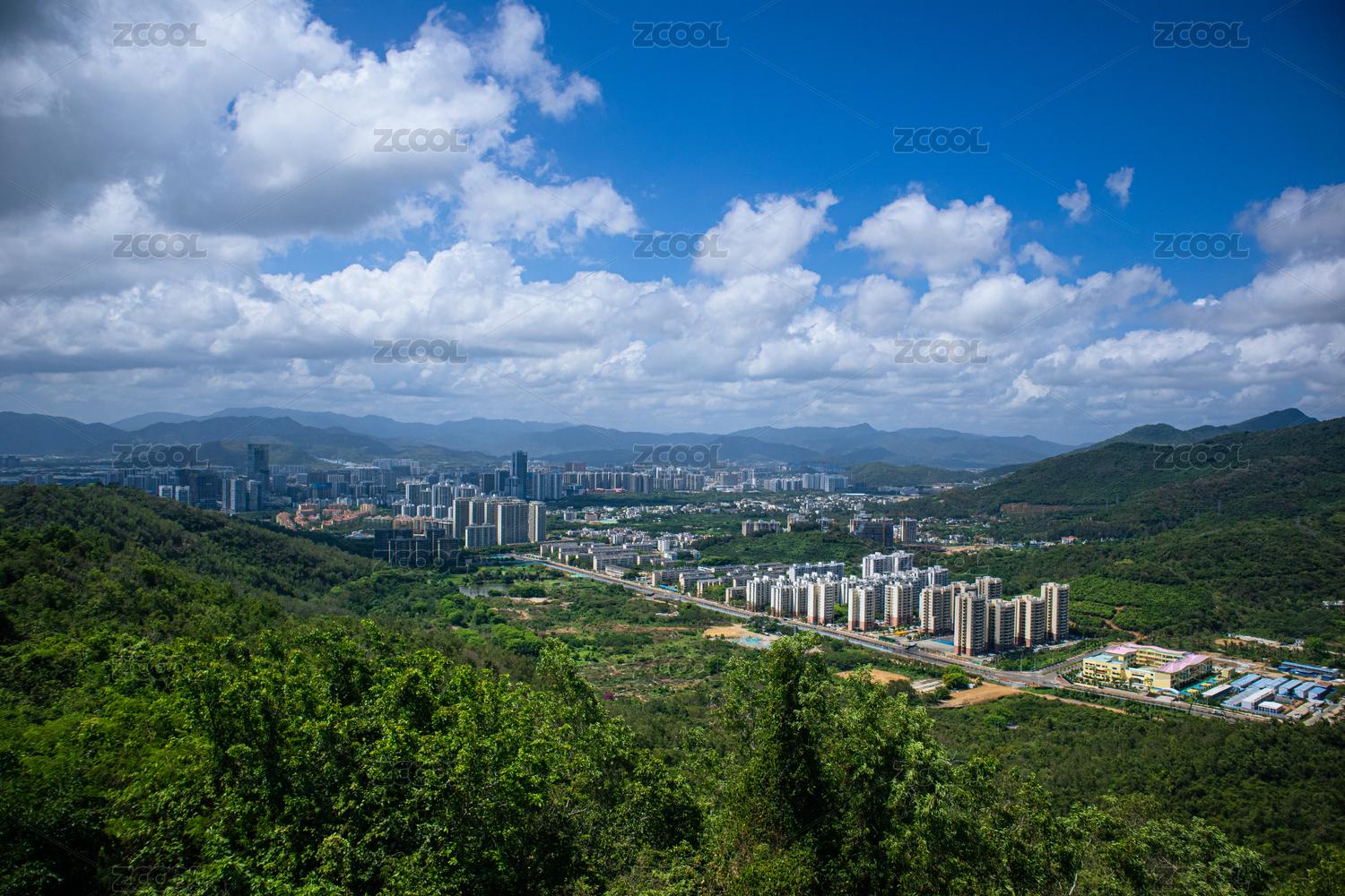 海南三亚临春岭深林公园山顶俯瞰城市建筑