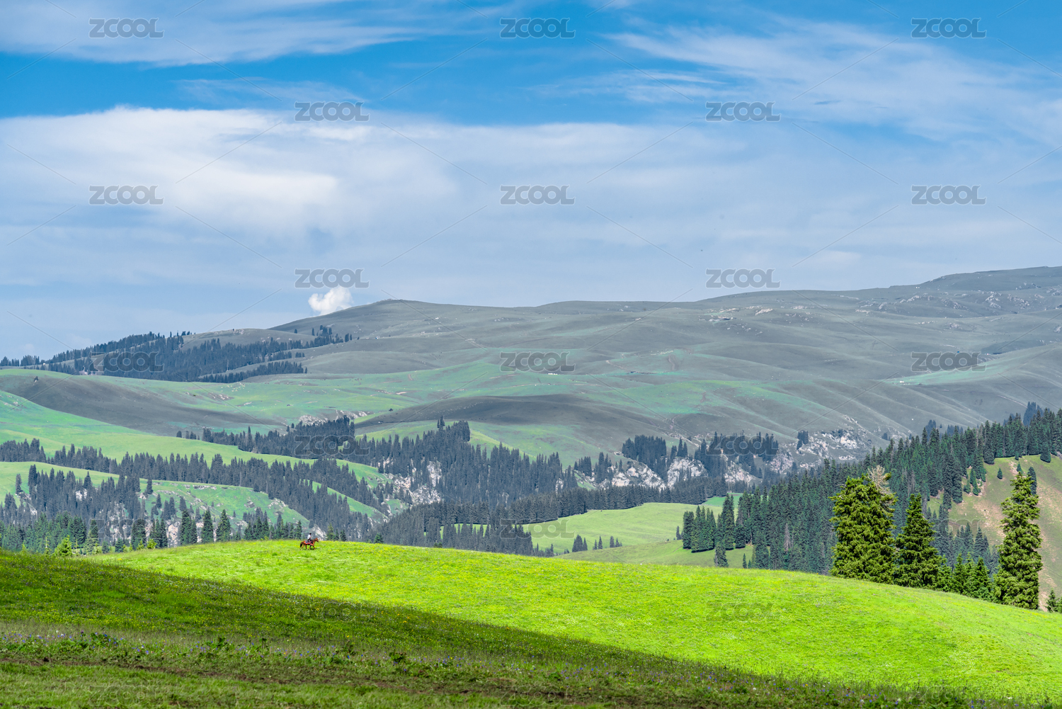 中国新疆伊犁库尔德宁草原高山草甸自然风光