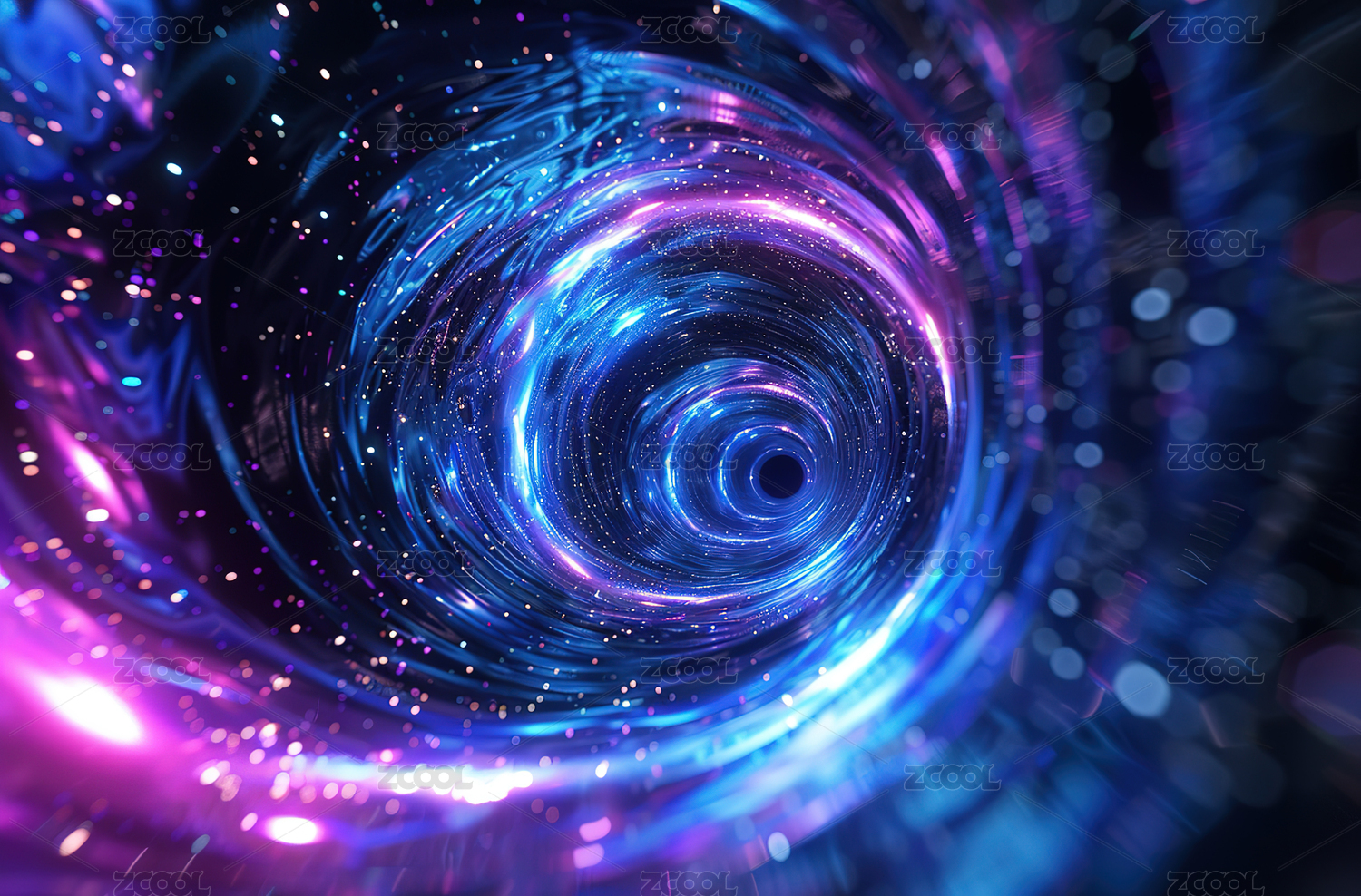 流动的曲线与粒子3D渲染,抽象蓝色现代背