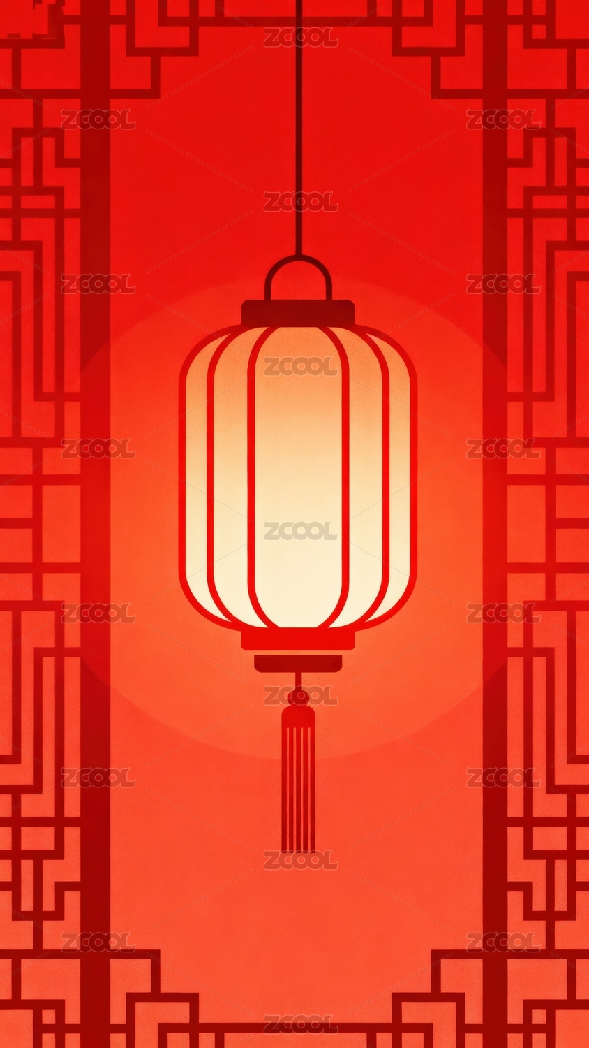 红色背景下的中式灯笼