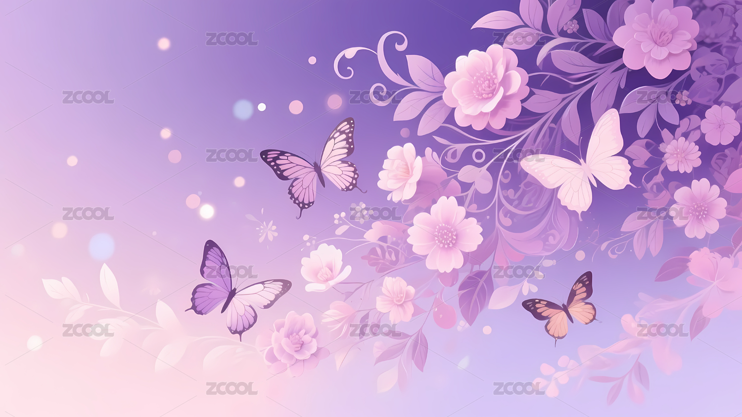 紫色,梦幻,背景,牡丹,盛开,花卉,蝴蝶,飞翔,飞舞,翅膀