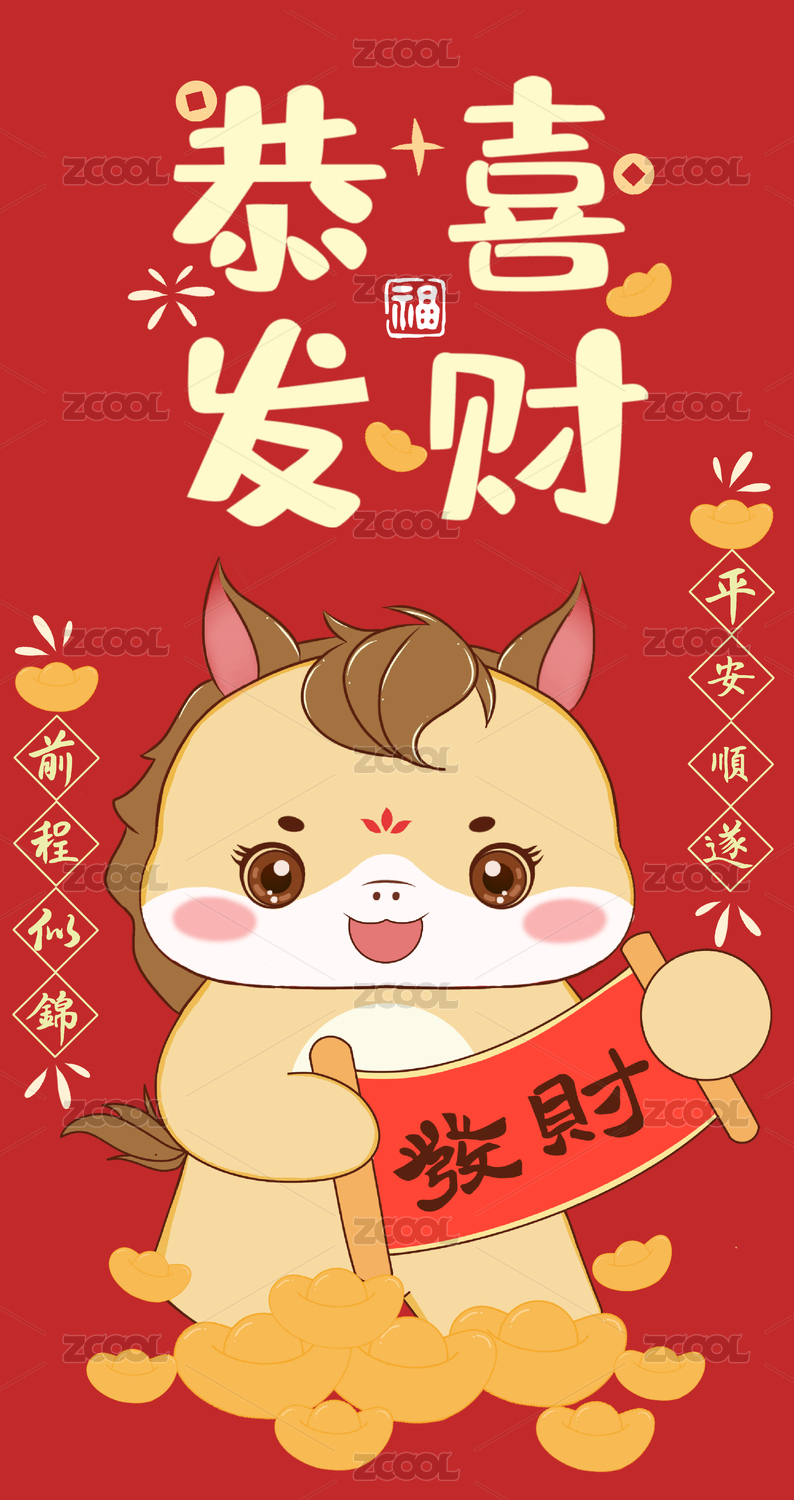 可爱卡通马2026马年生肖红包