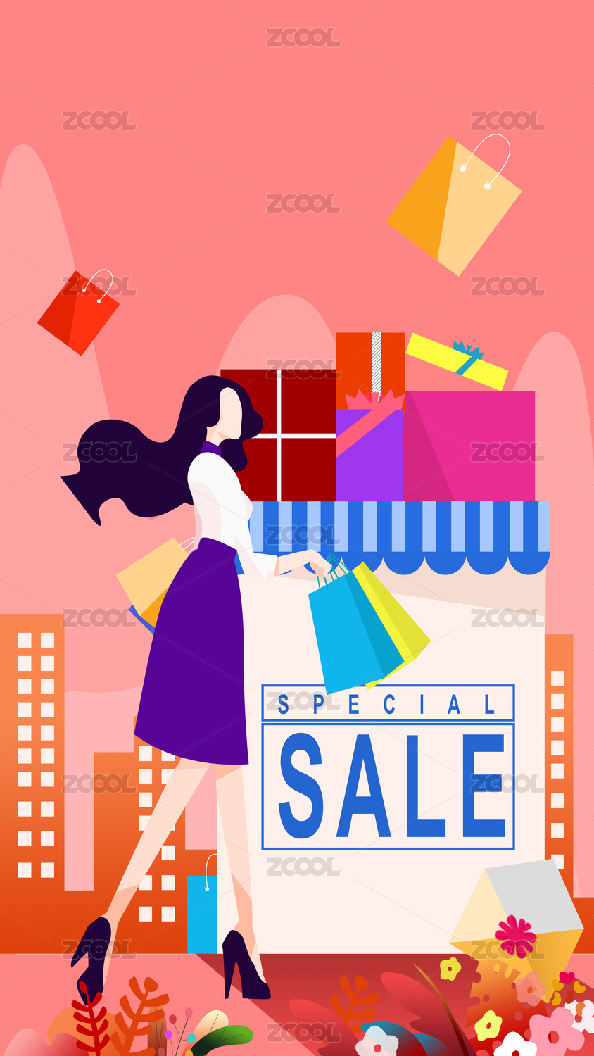 插画,背景,购物,电商,节日,促销,活动,美女,时尚,礼物