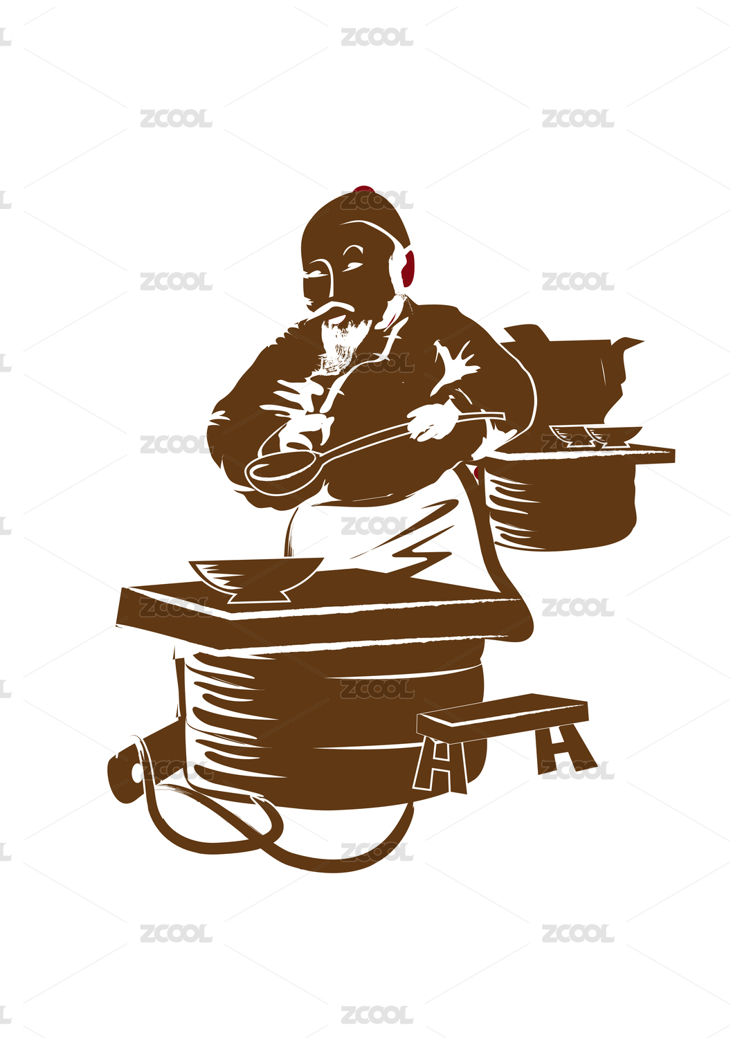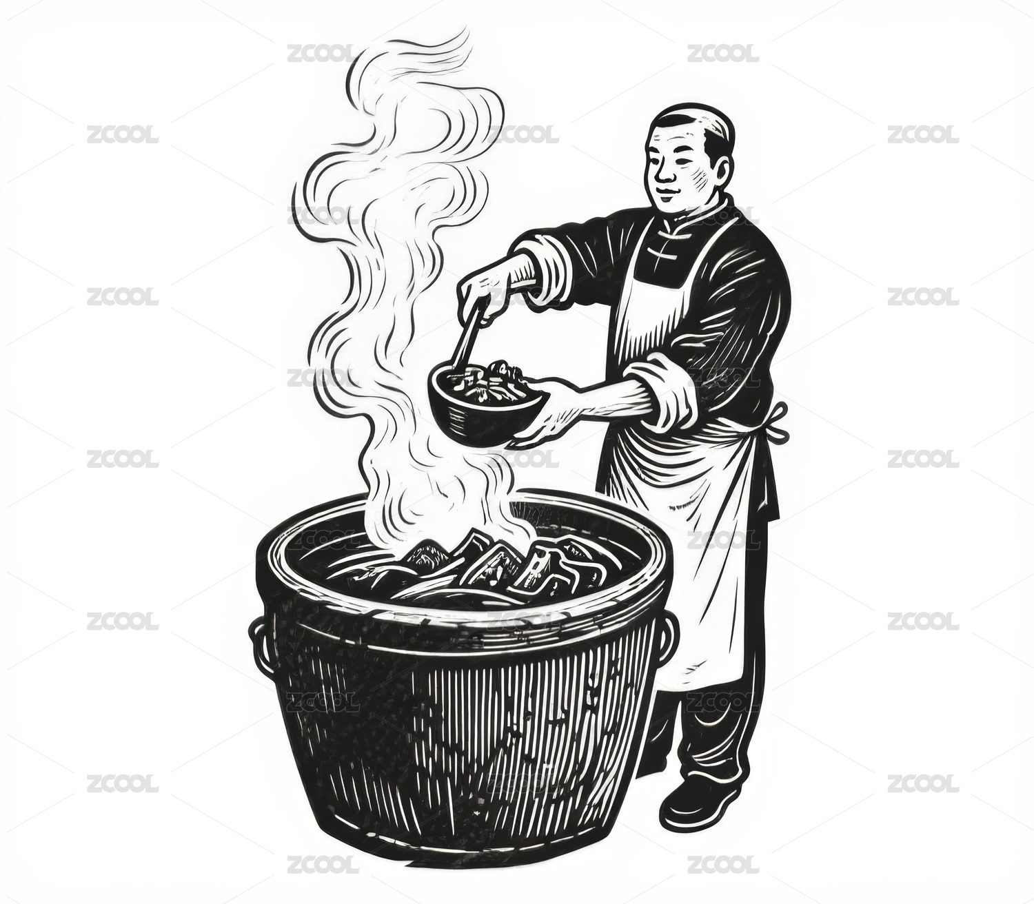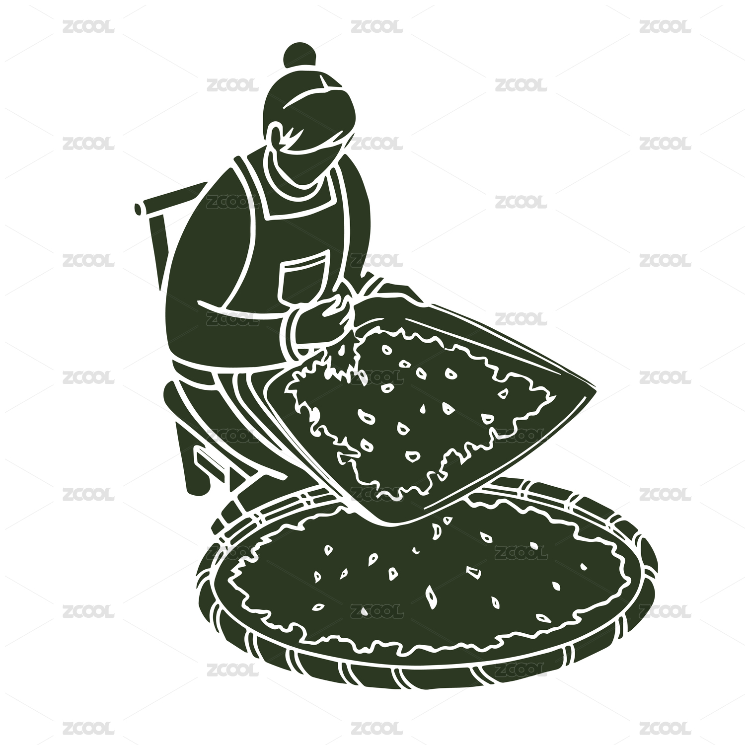 中国风风俗传统美食古人打糍粑手绘矢量线稿