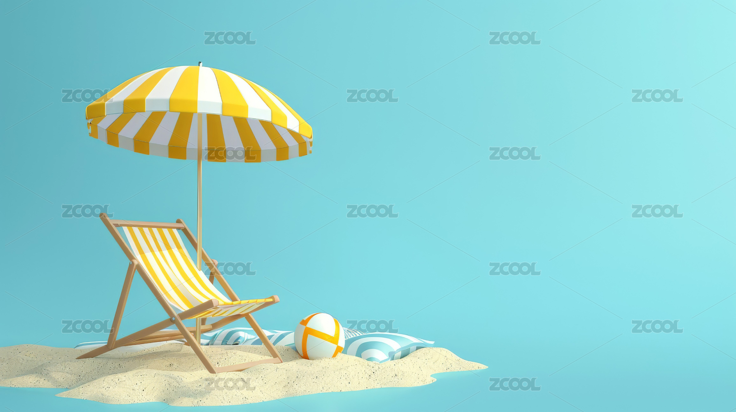 AIGC202404,旅游,旅行,背景,3D,三维,海滩,沙滩椅,简约,干净