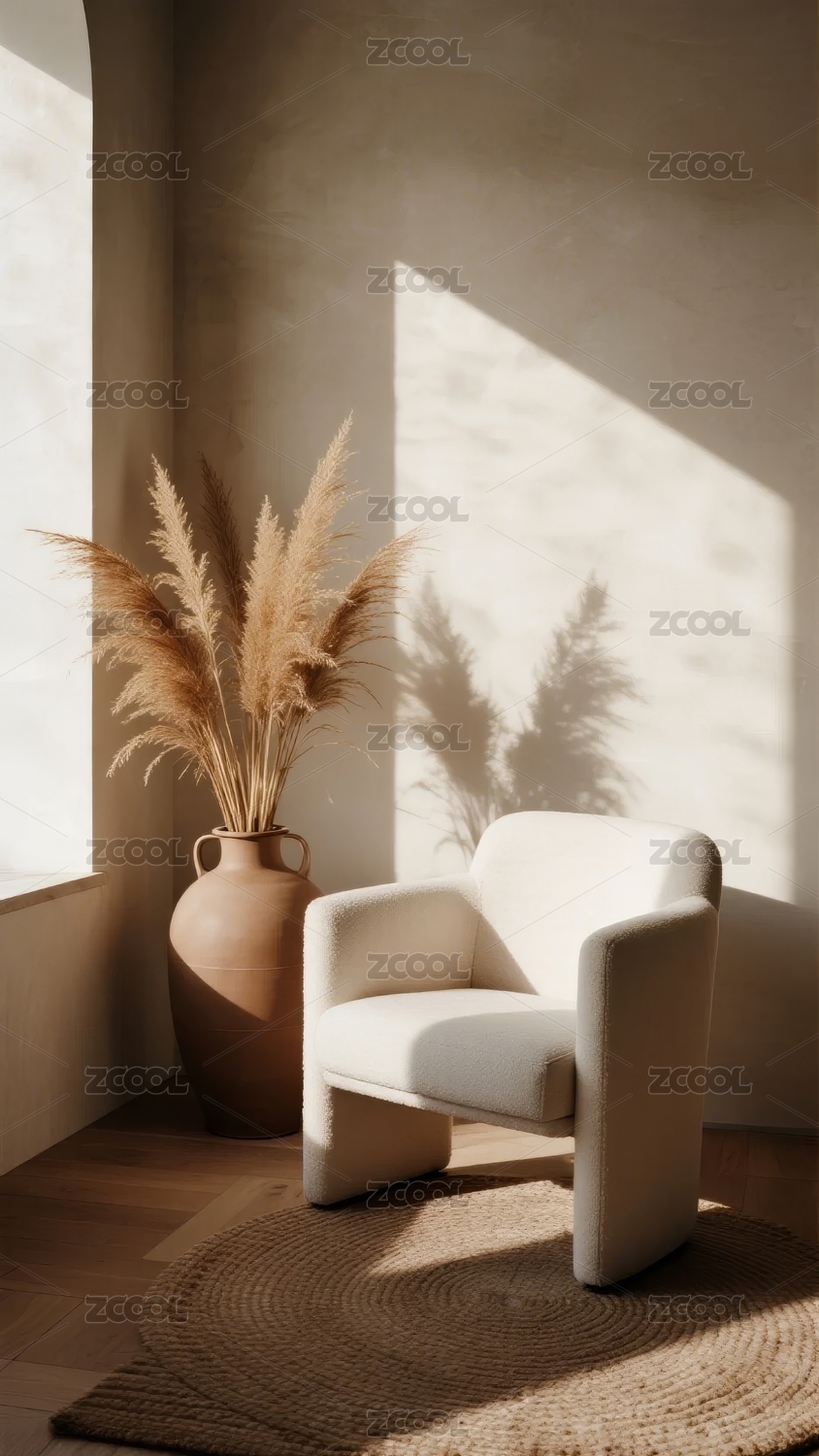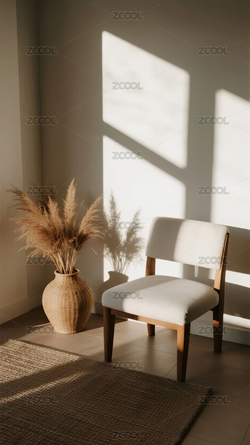 阳光洒落的简约室内角落