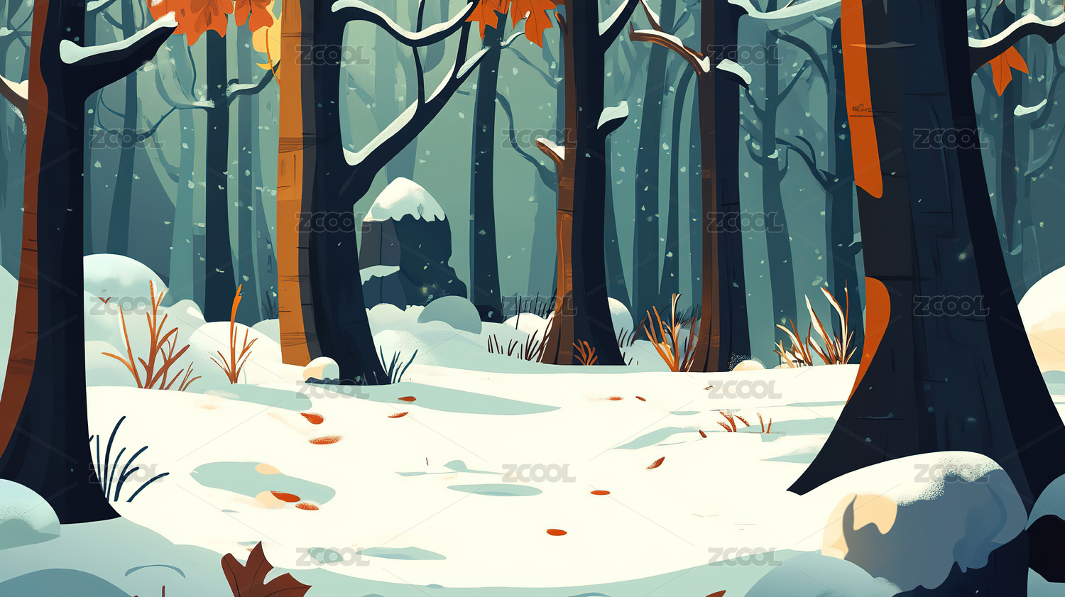 冬天户外插画背景图