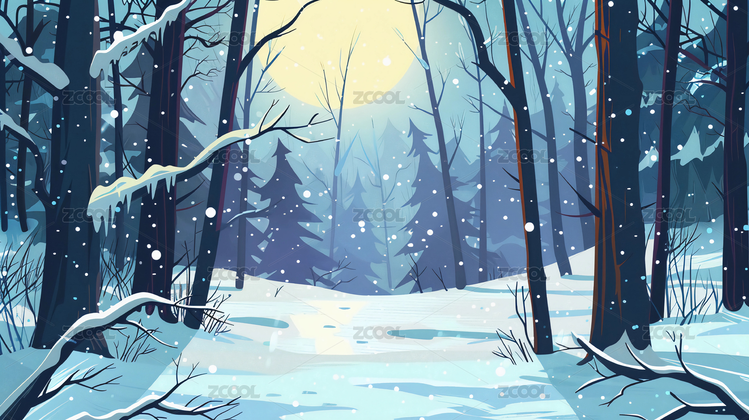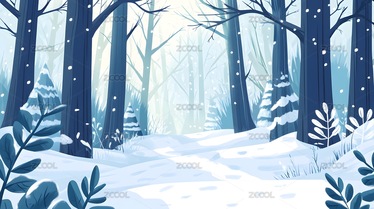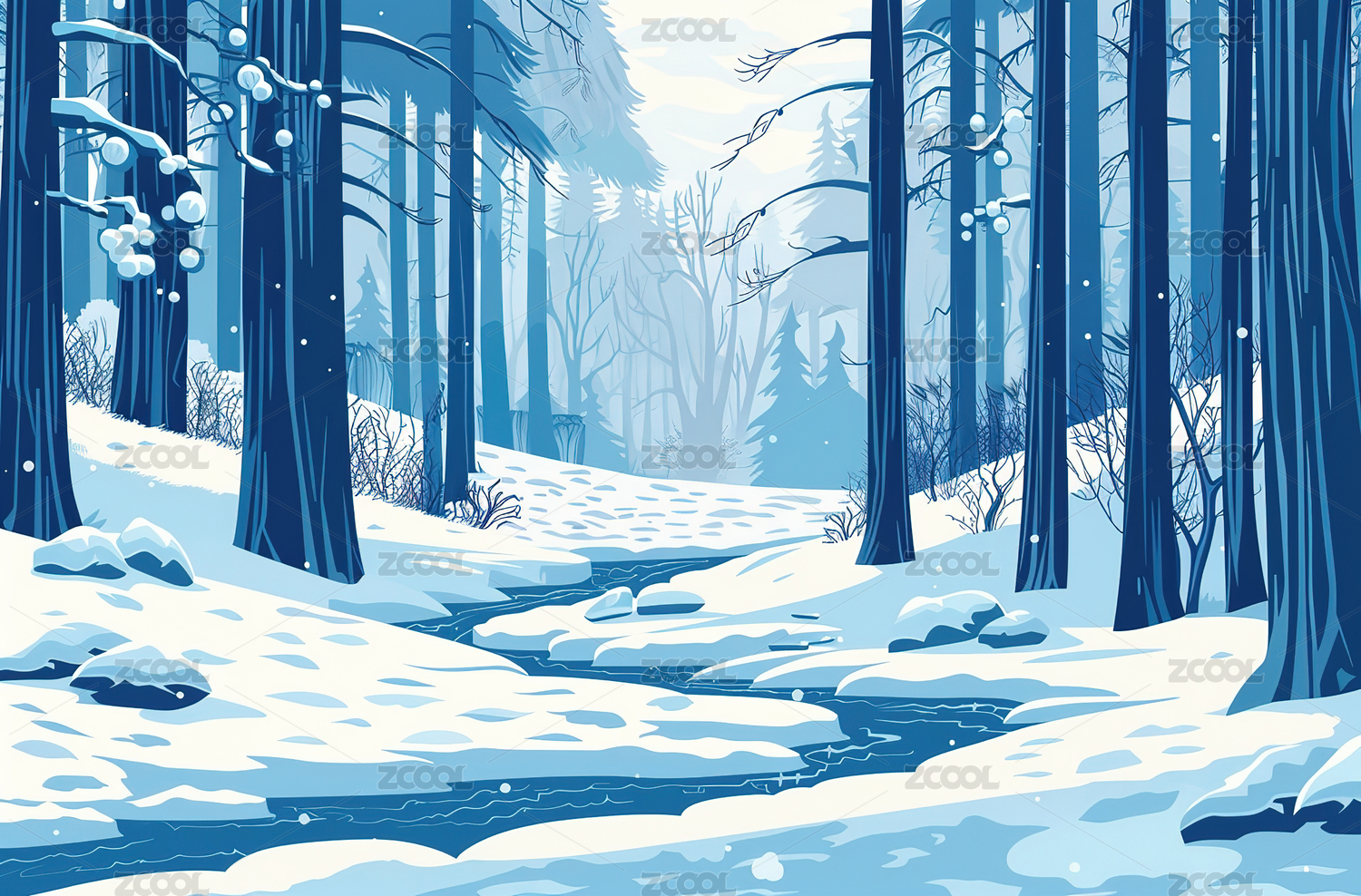冬天户外自然森林雪景插画