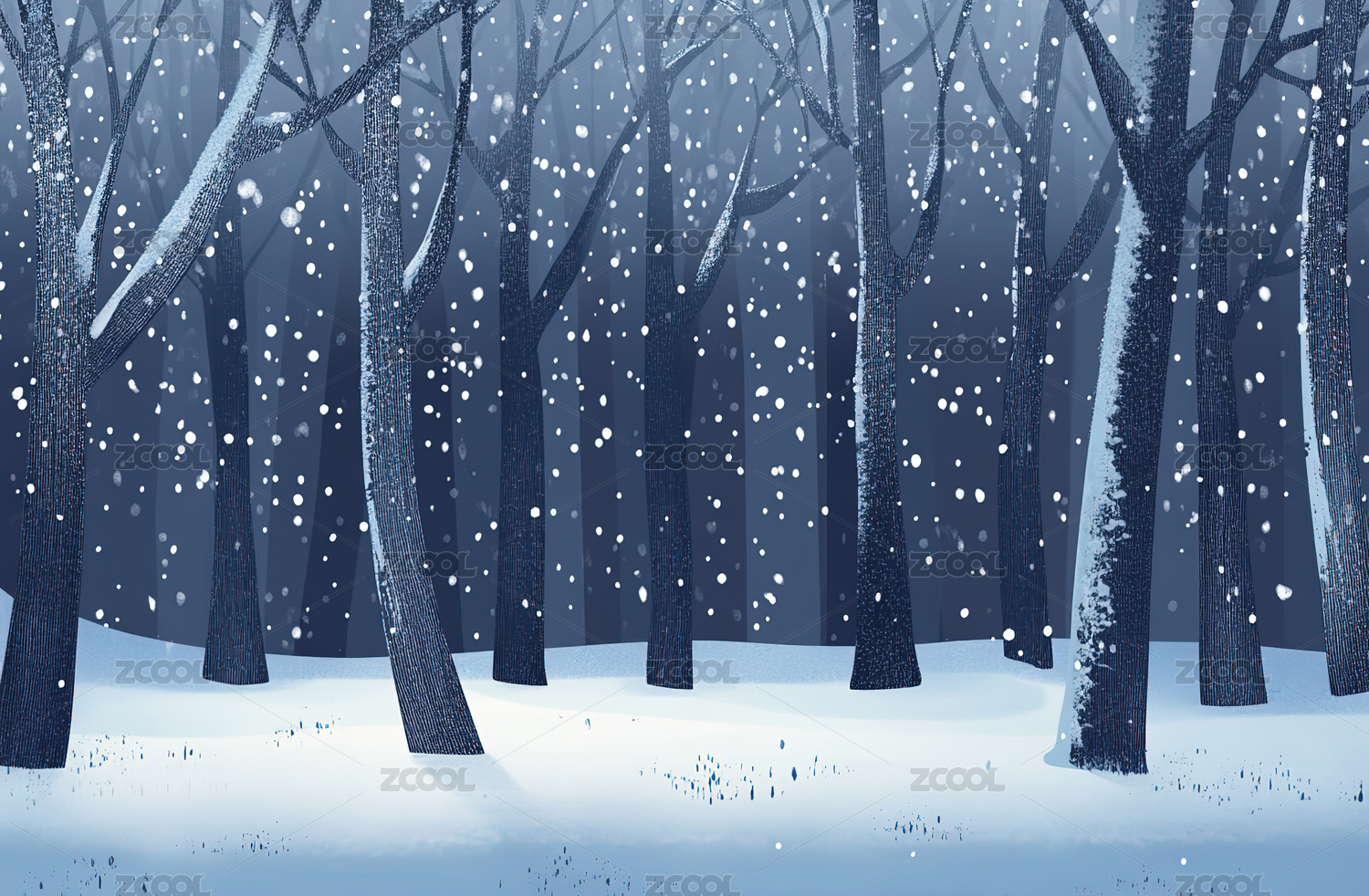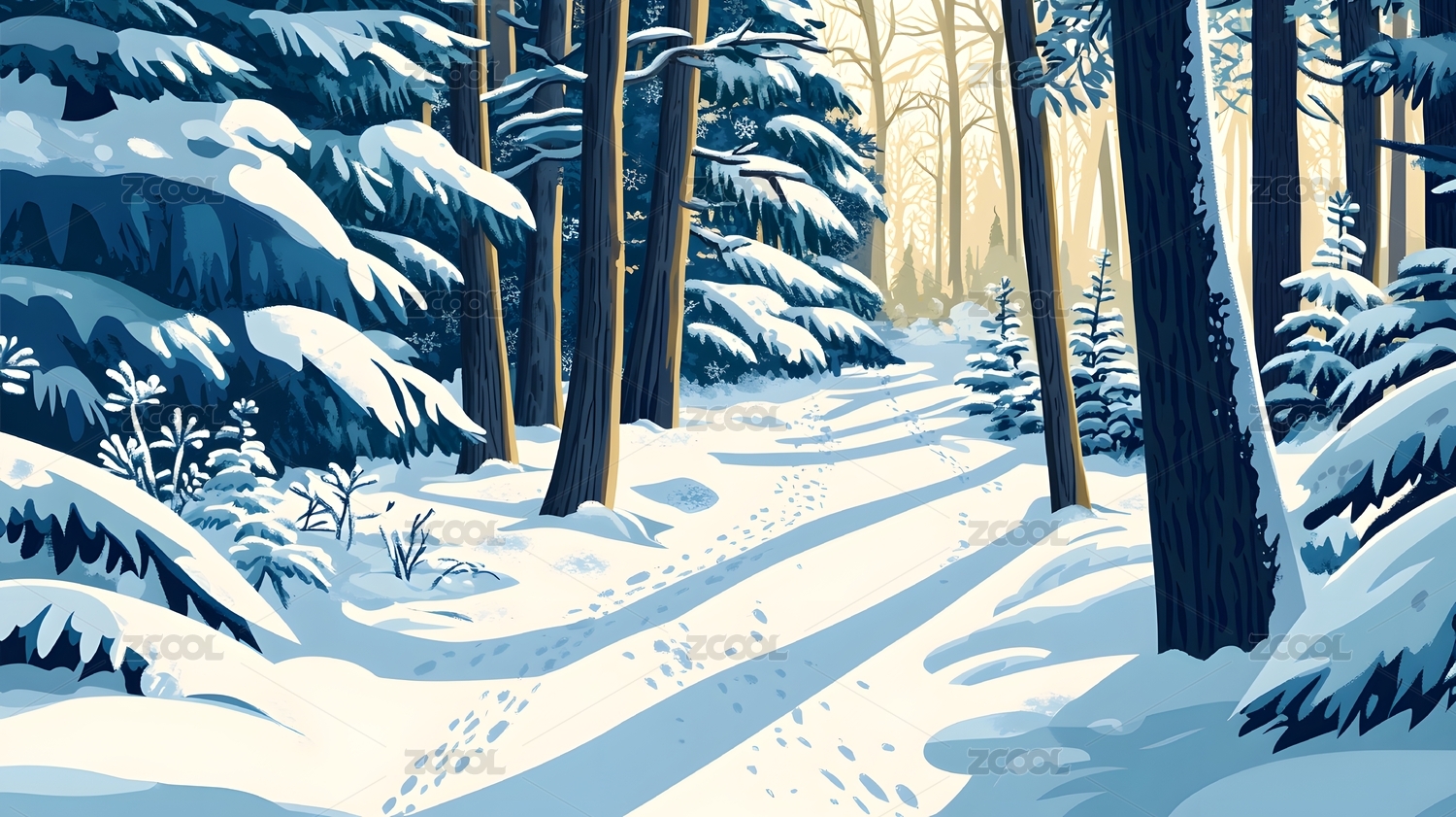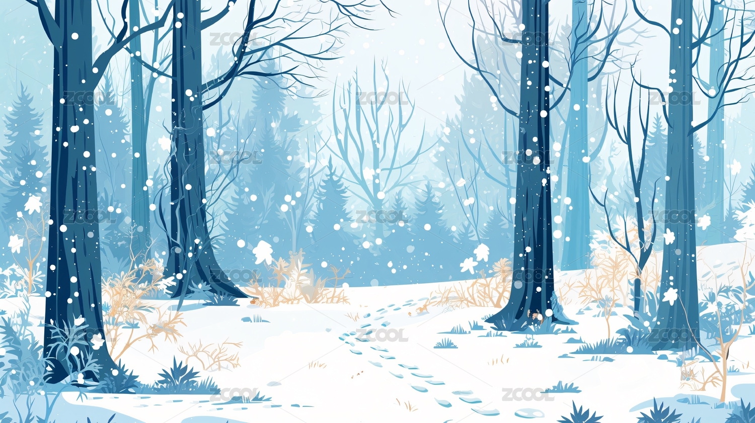 冬天户外自然森林雪景插画