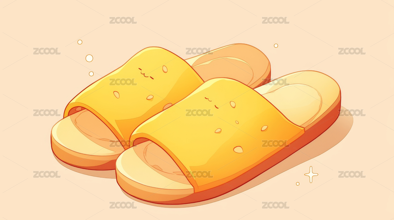 插画,舒适,设计,时尚,潮流,简洁,卡通,橙色,人字拖,凉鞋
