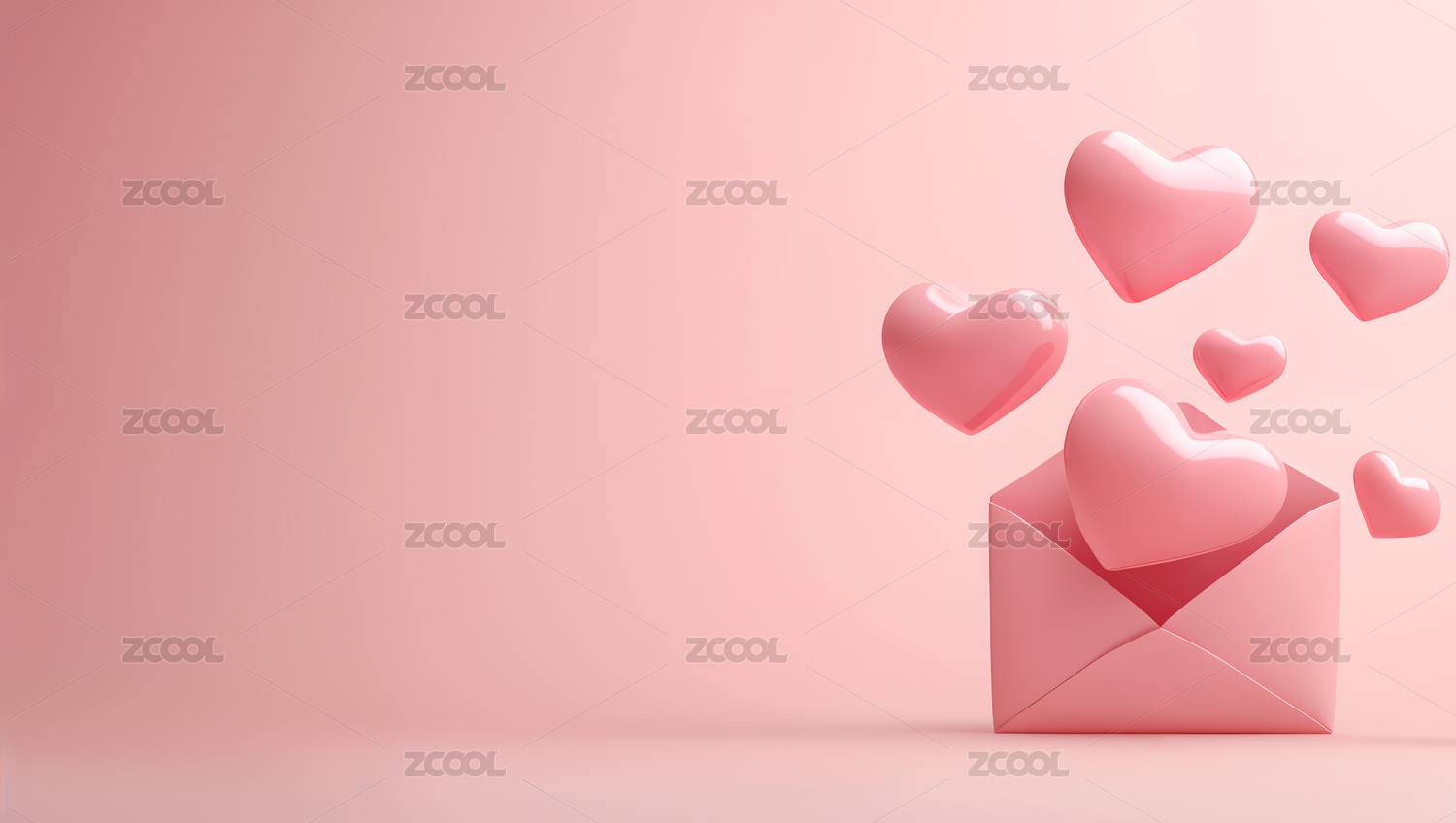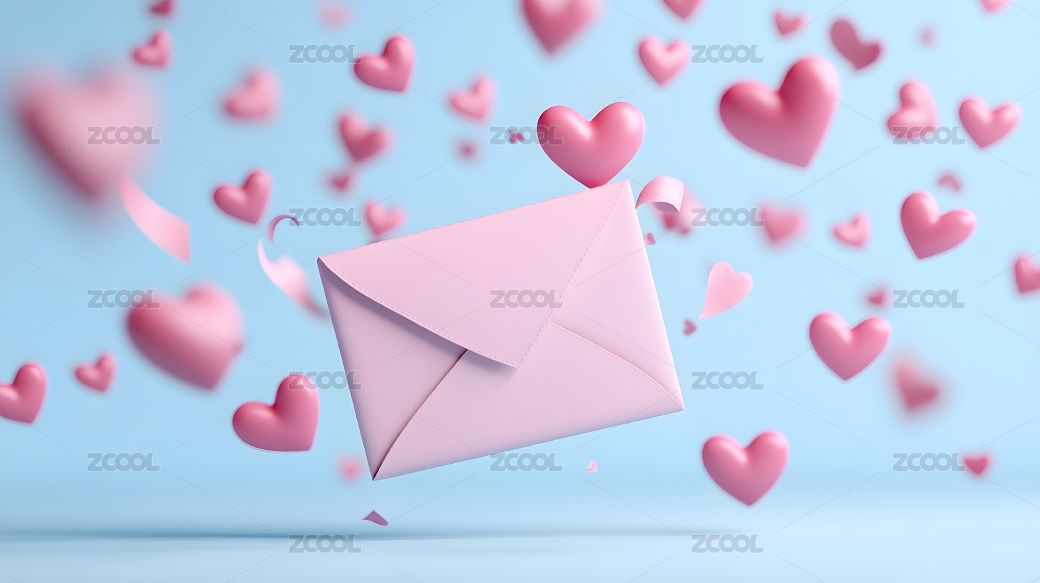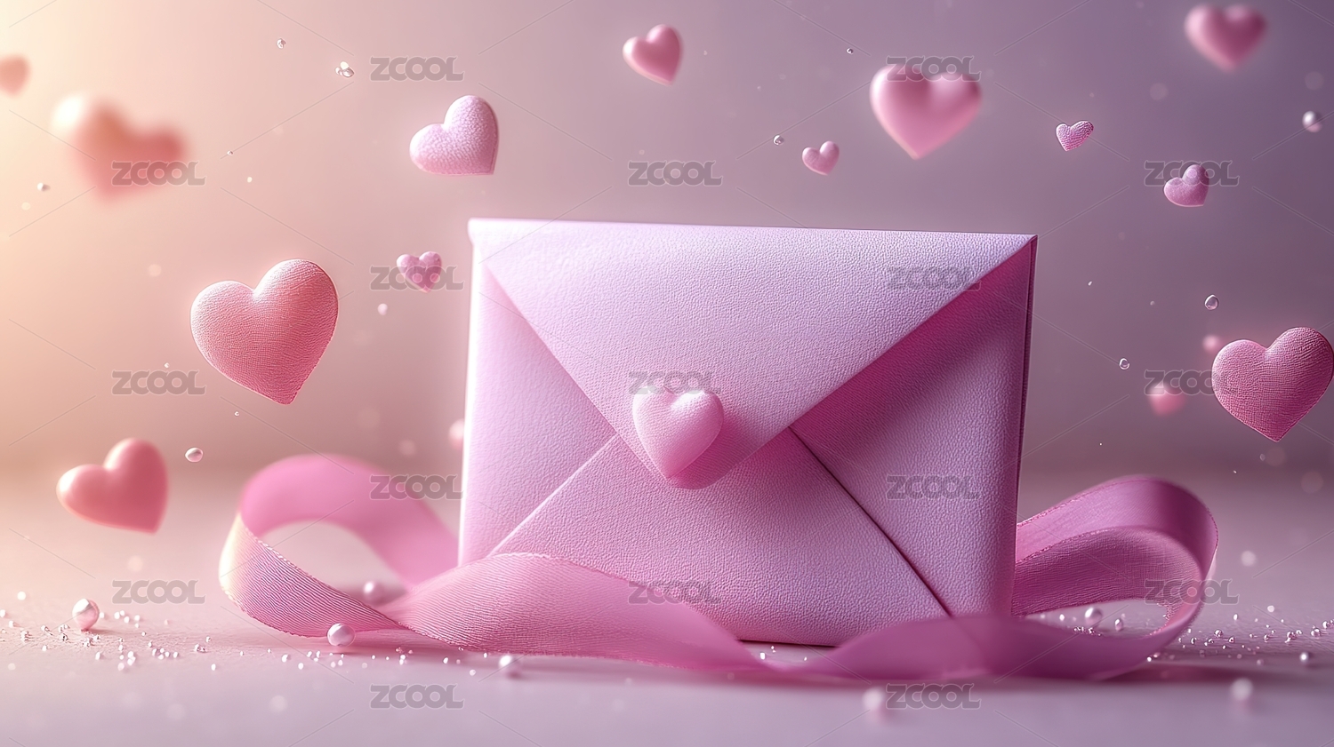 3D,情人节,粉色,DXCZ202402,爱心,立体,信封,情书,光斑,心形