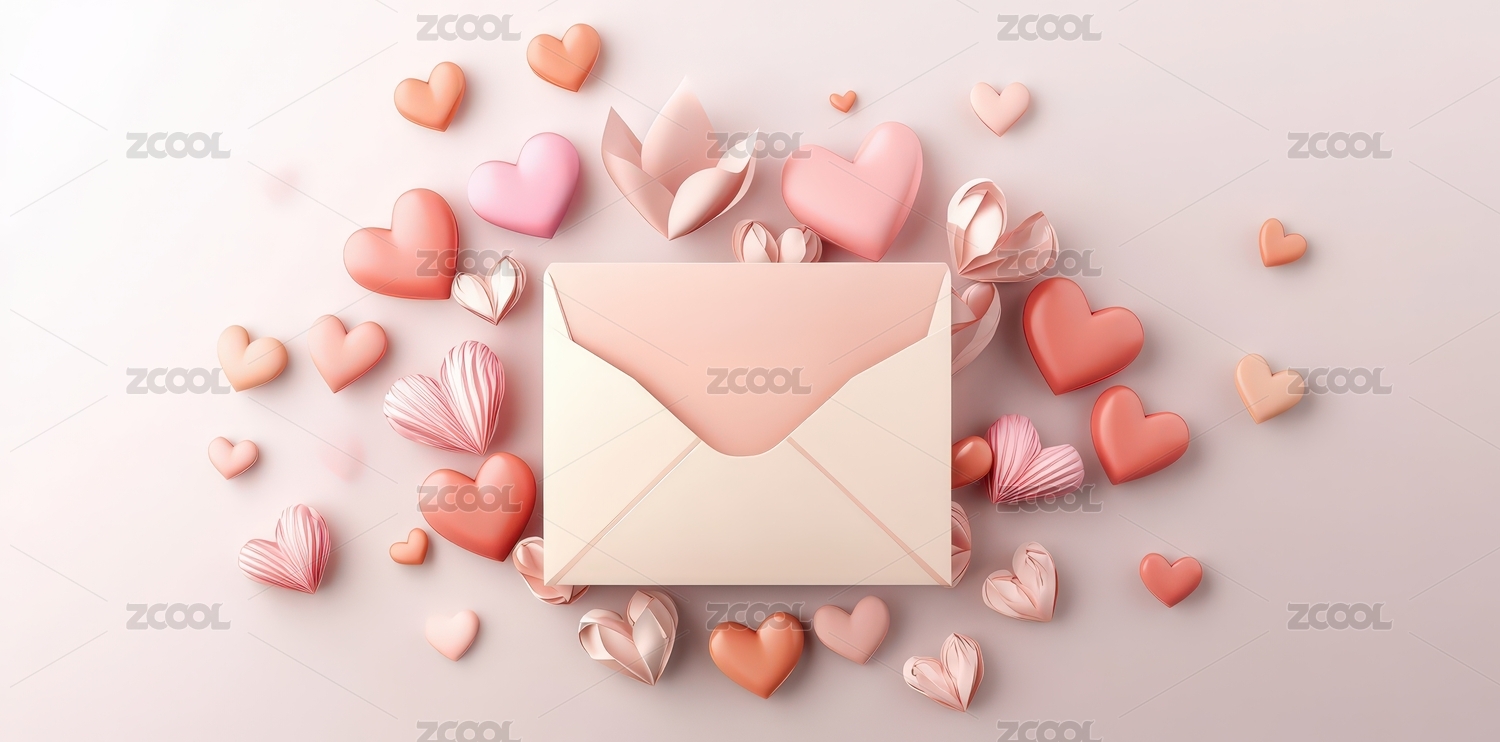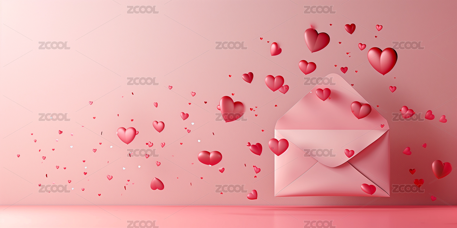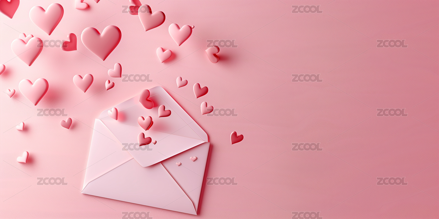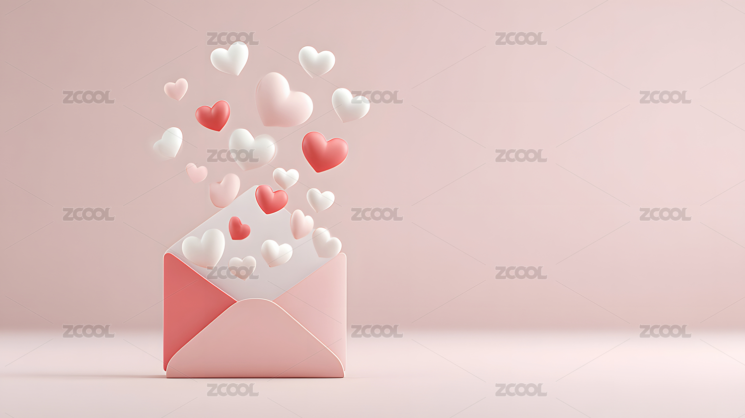 3D,情人节,粉色,DXCZ202402,爱心,立体,信封,情书,光斑,心形