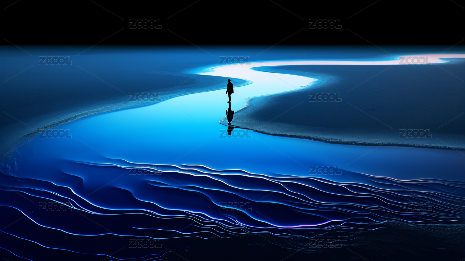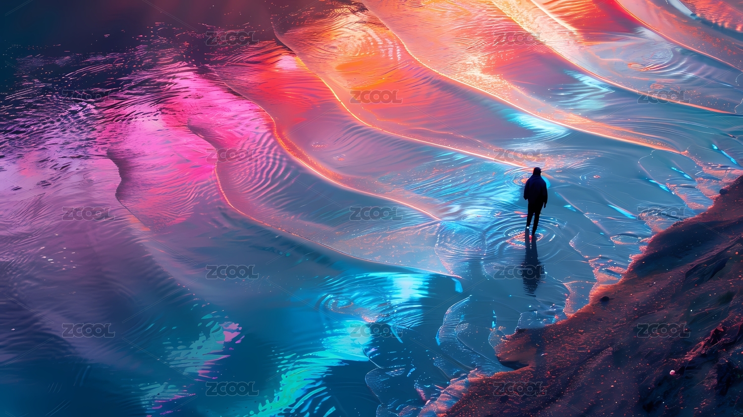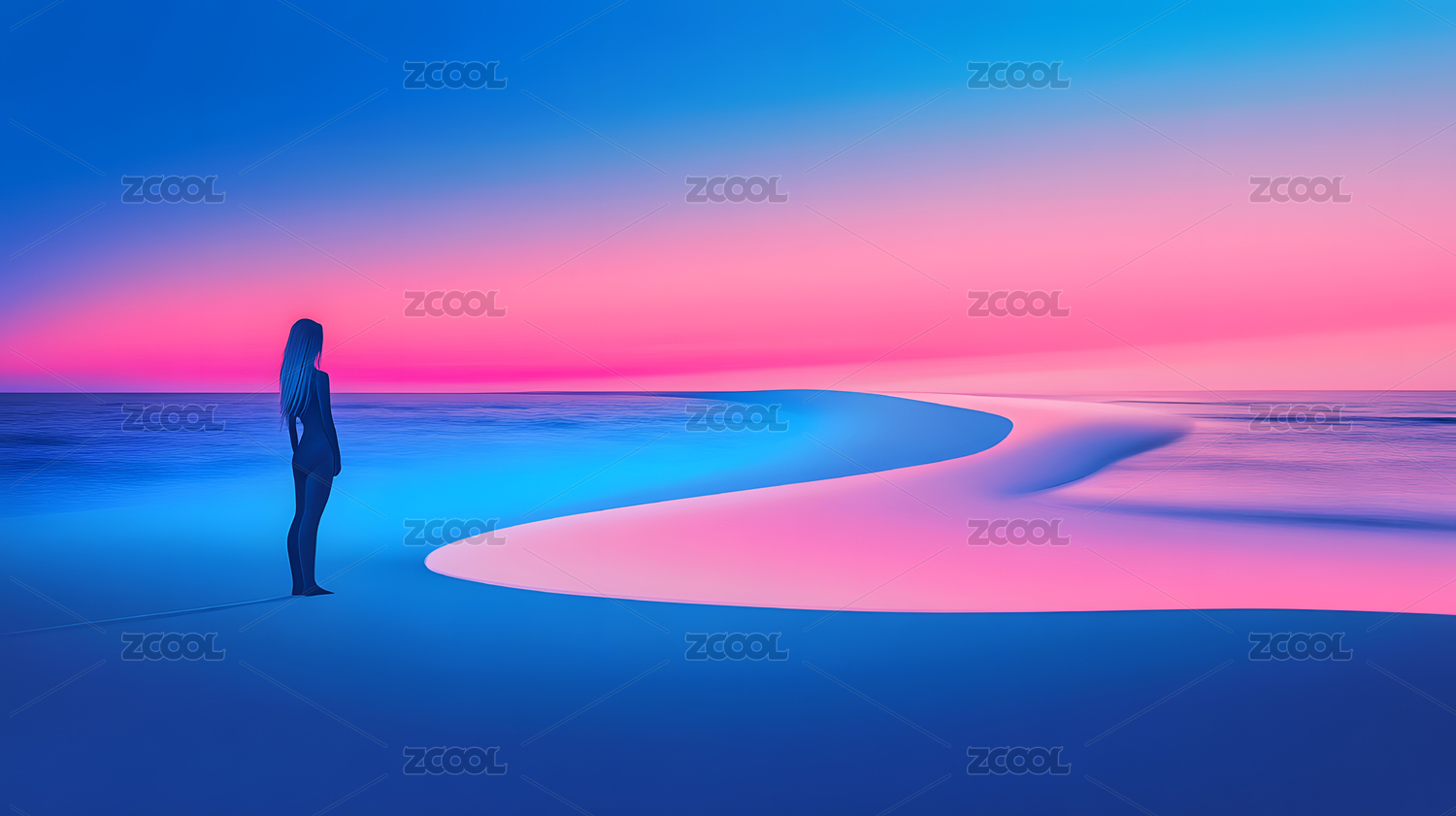 科幻,海滩,人影,天空,云层,红色调,神秘,壮丽,幻想,未来