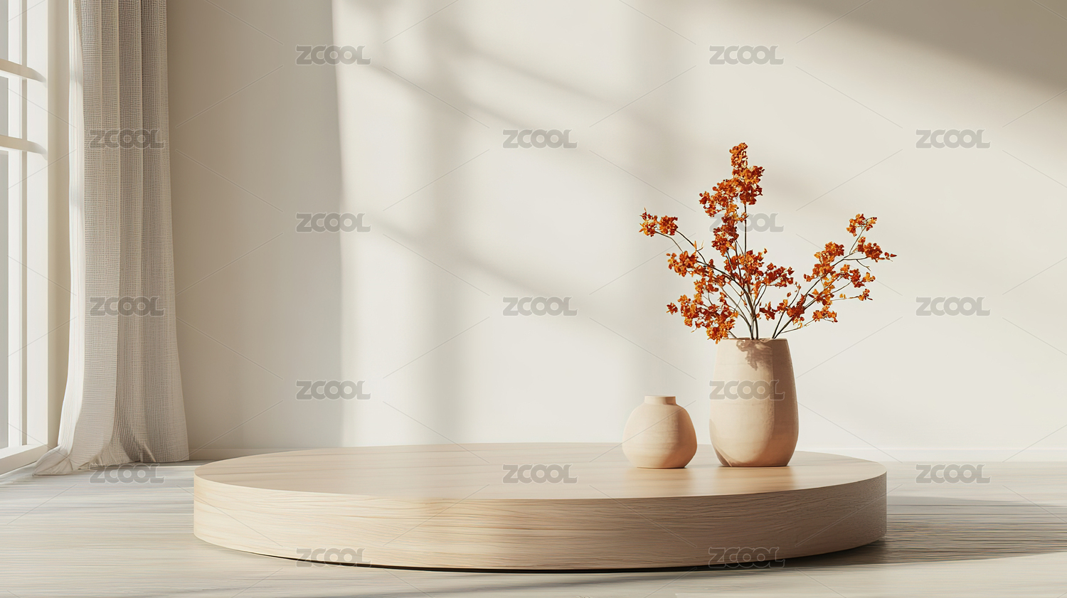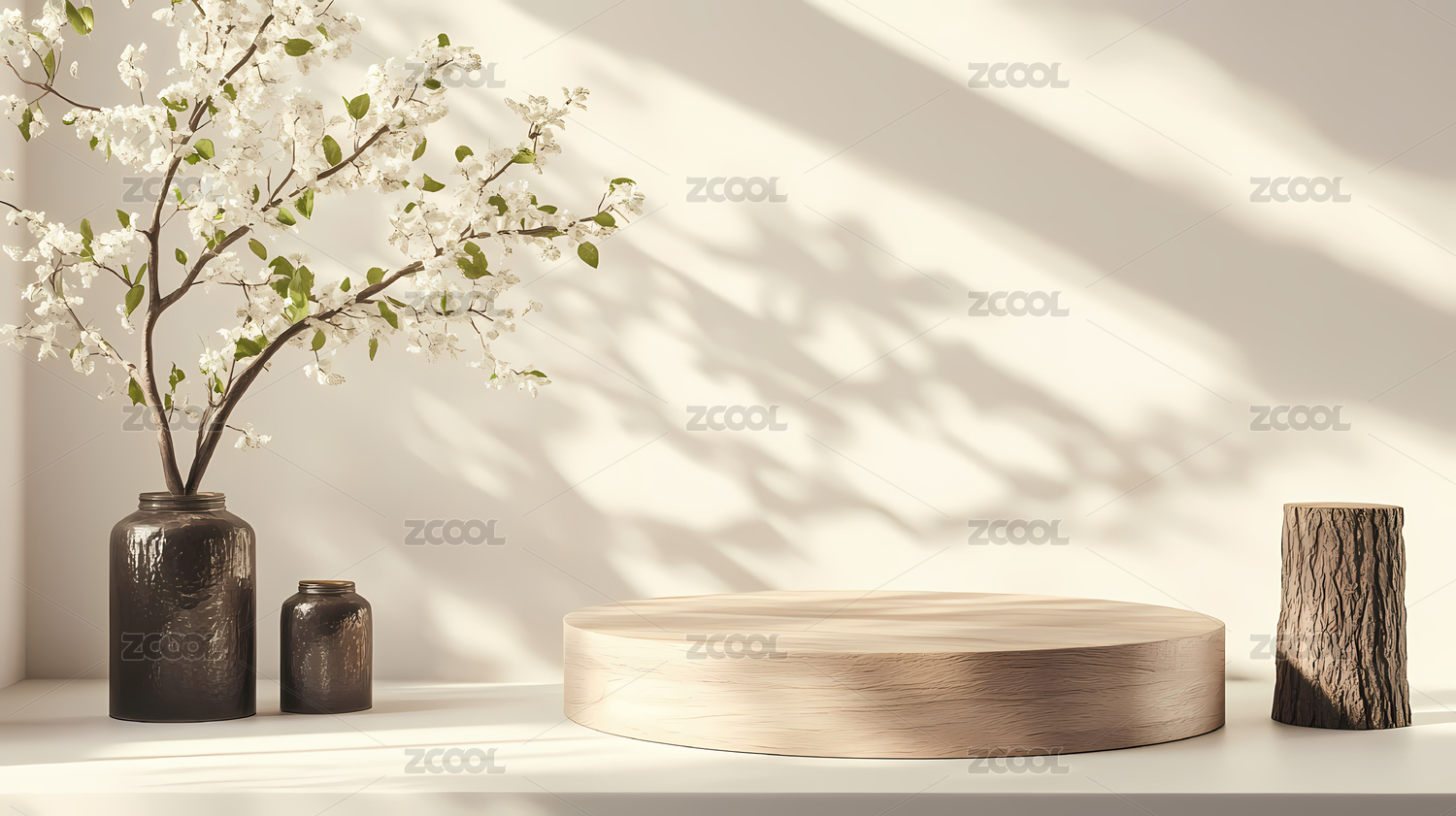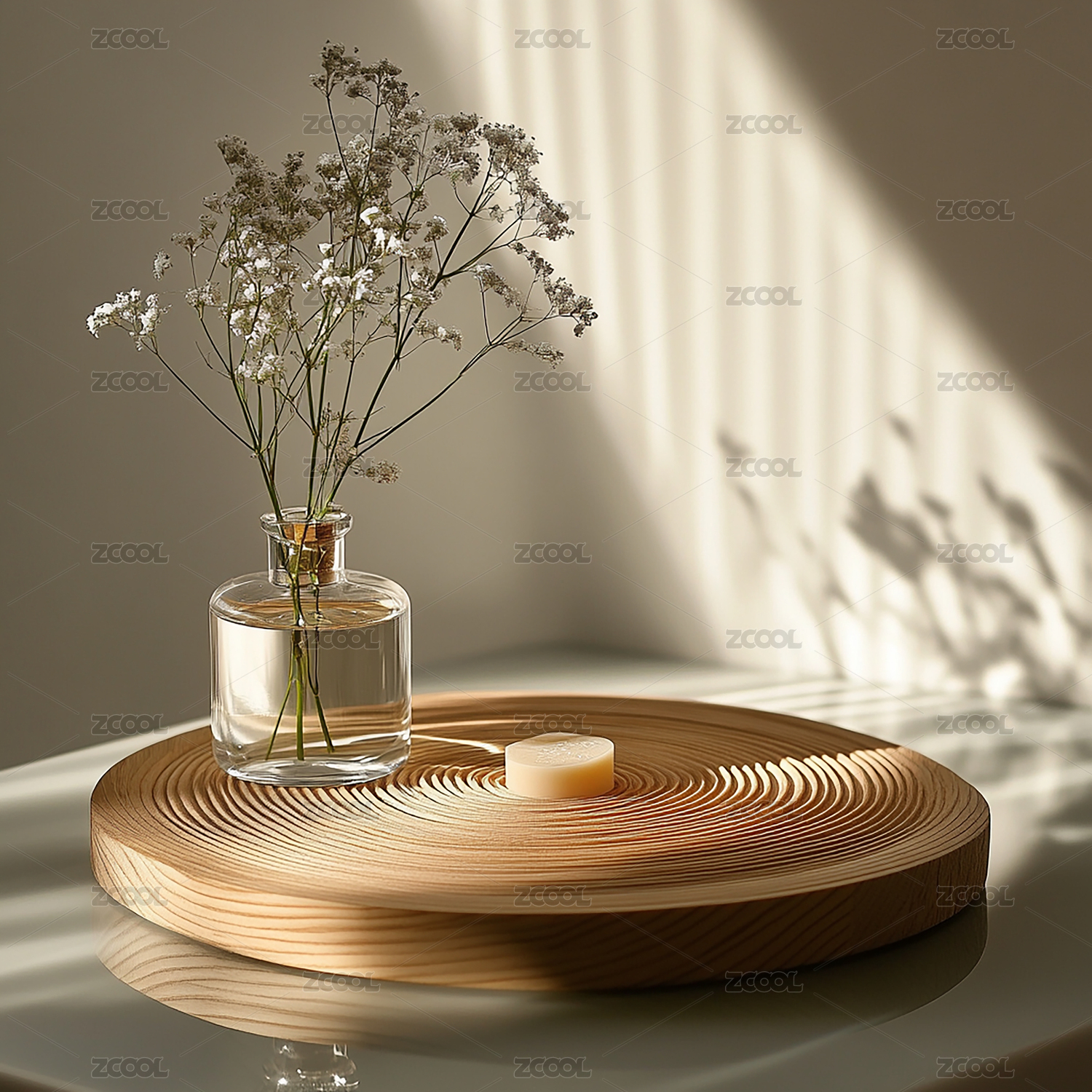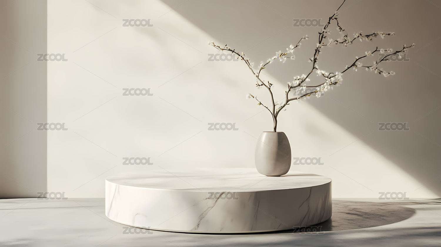 柔和光影下的大理石圆形展台设计