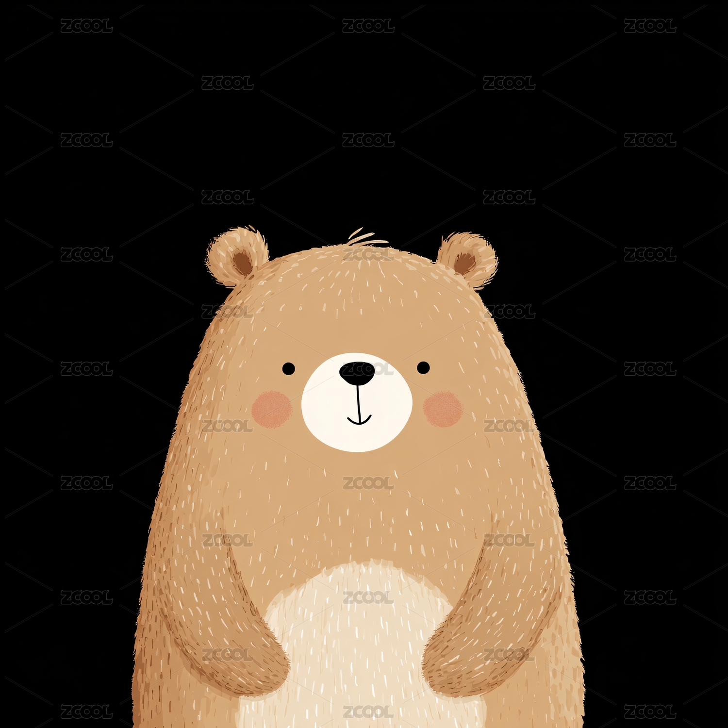 数字插画,温馨,表情,友好,棕色,毛皮,笔触,质感,背景,绿色