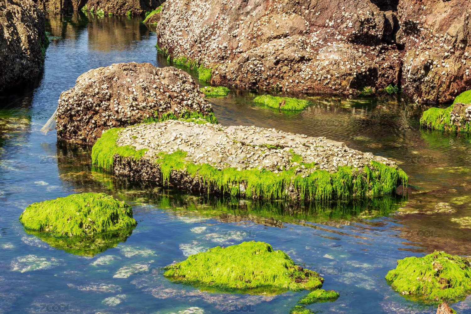 海边的礁石和藻类植物