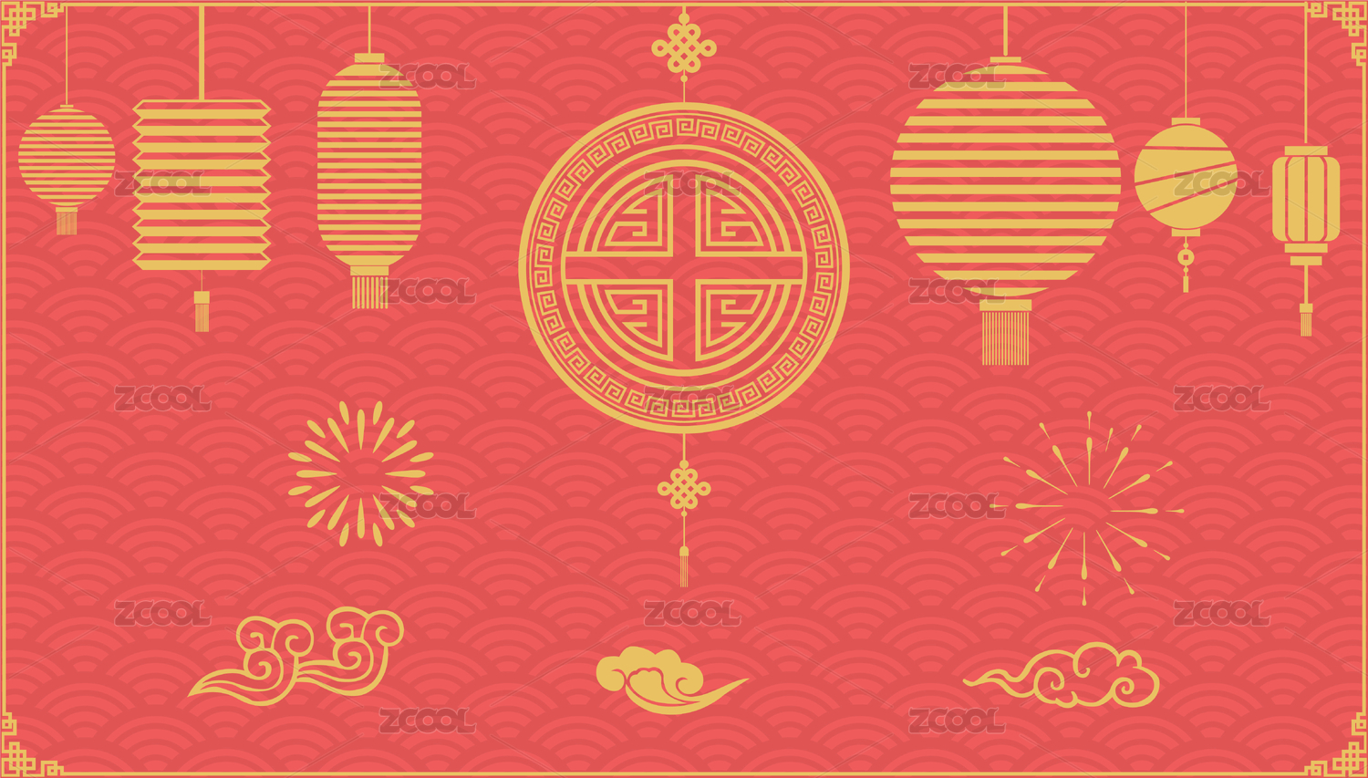 红色喜庆有灯笼传统元素及产品平台的新年背景