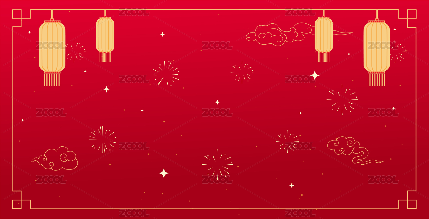 新年喜庆灯笼祥云烟花爆竹大气红色海报背景