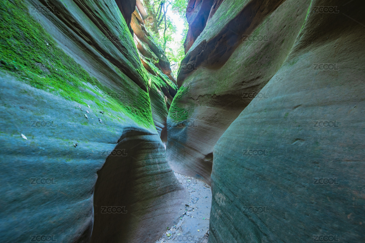 陕西,延安,甘泉县,雨岔大峡谷,峡谷,苔藓,生机,岩峰,曲线,光线