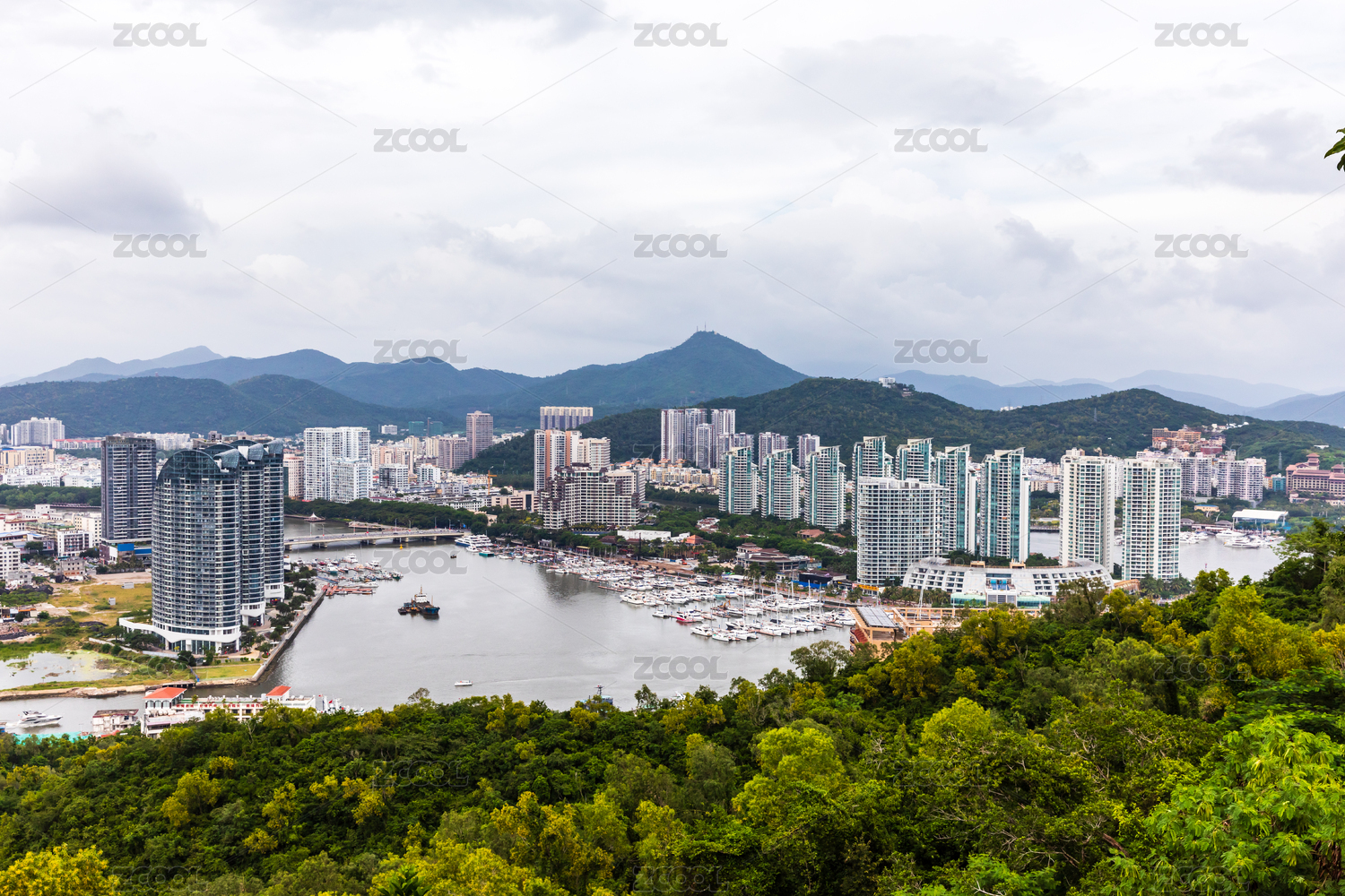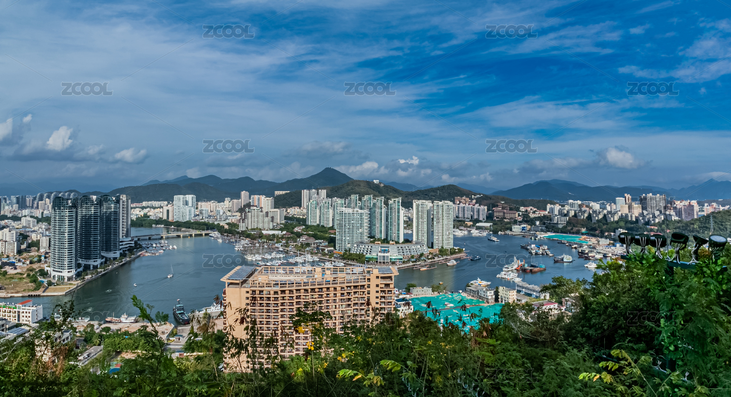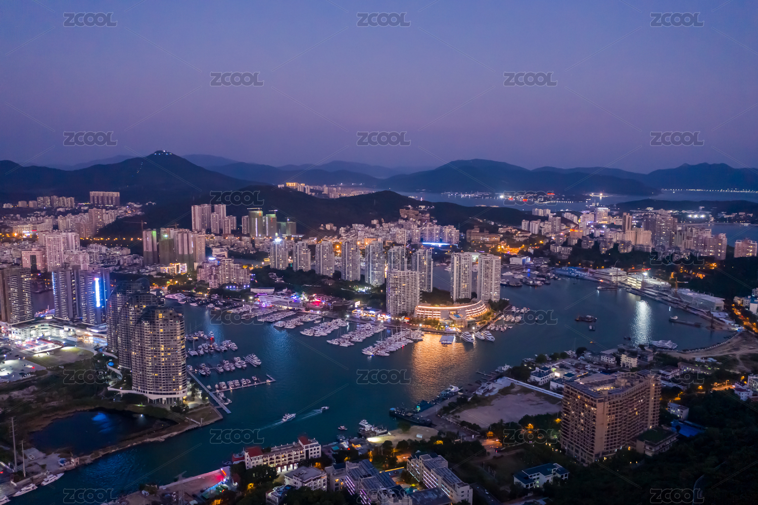 三亚三亚湾游艇码头及周边大东海城市风景航