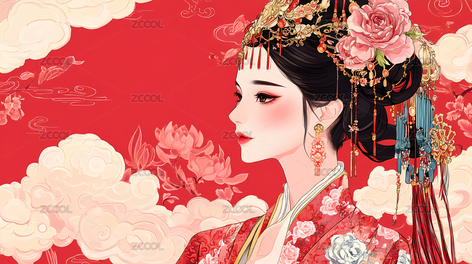 中国风敦煌飞天人物国潮节日艺术创意插画