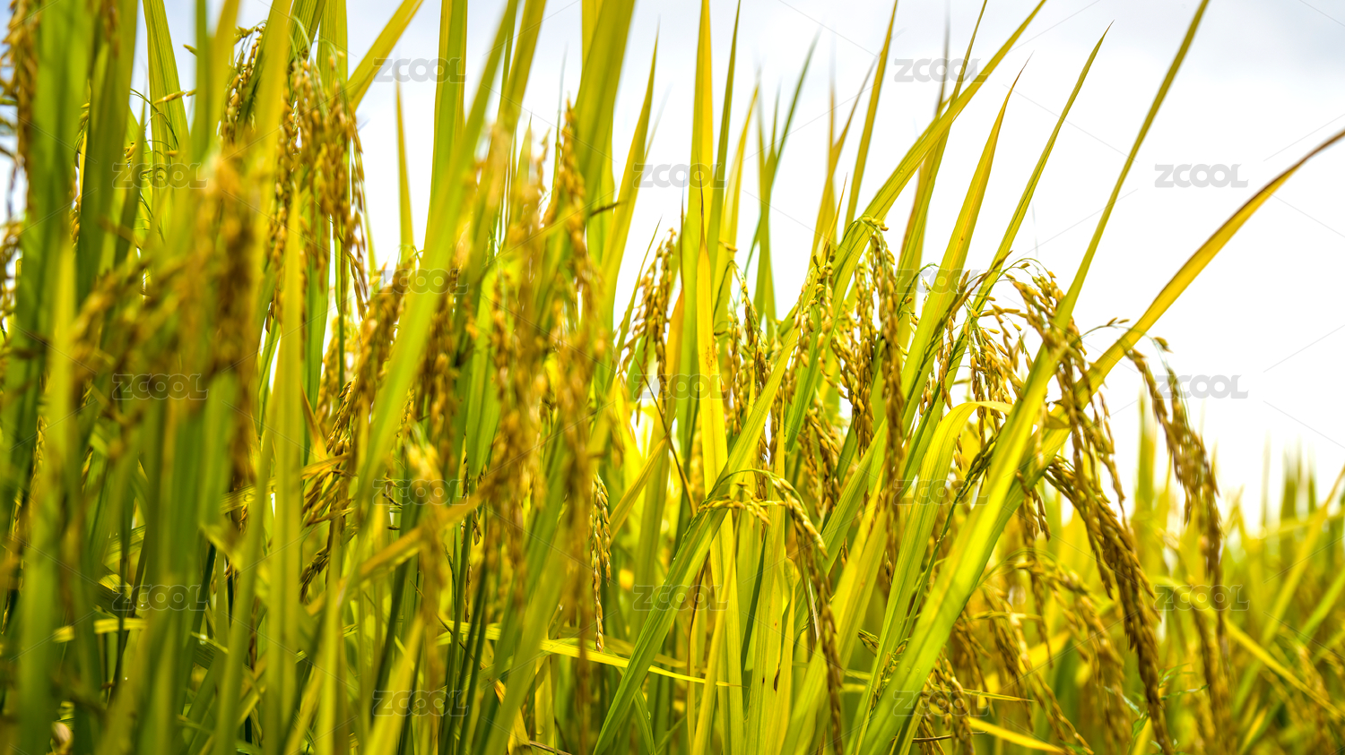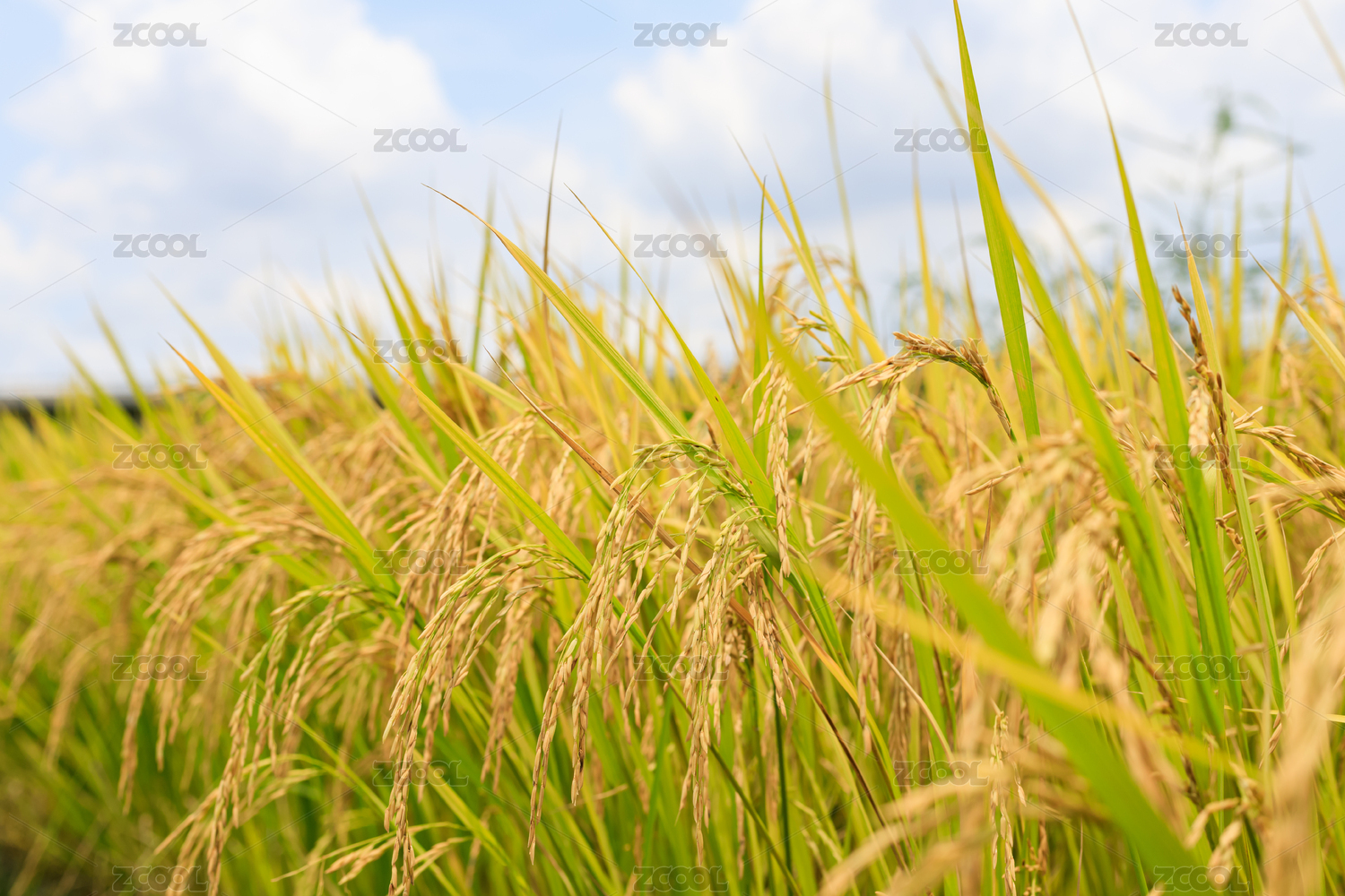 丰收季节晴朗天空下饱满成熟的金黄色的稻谷