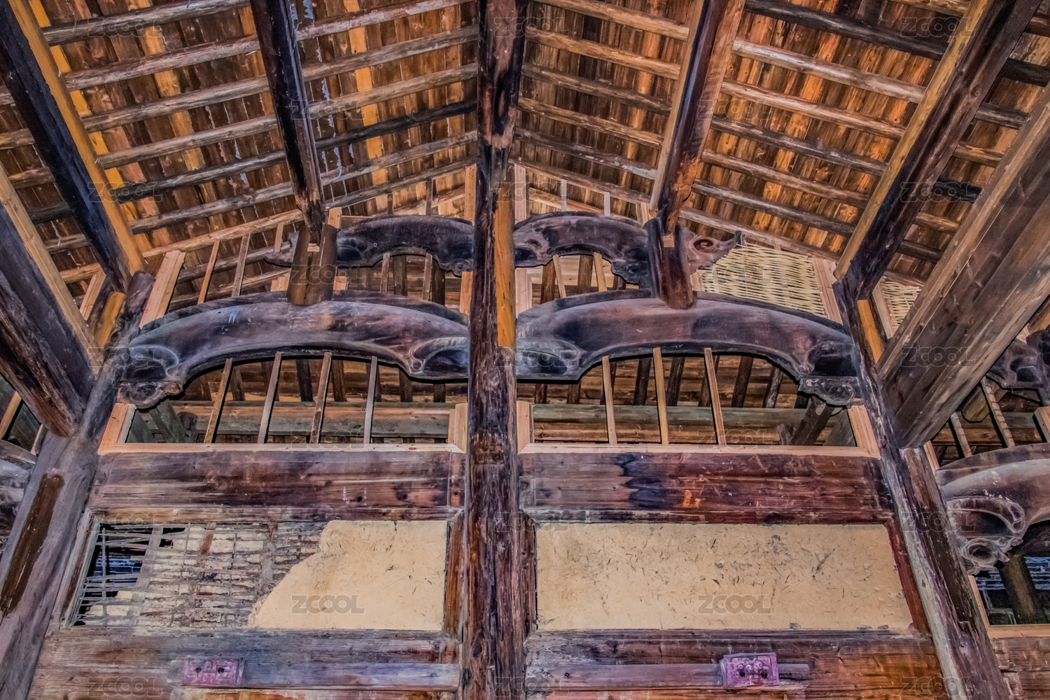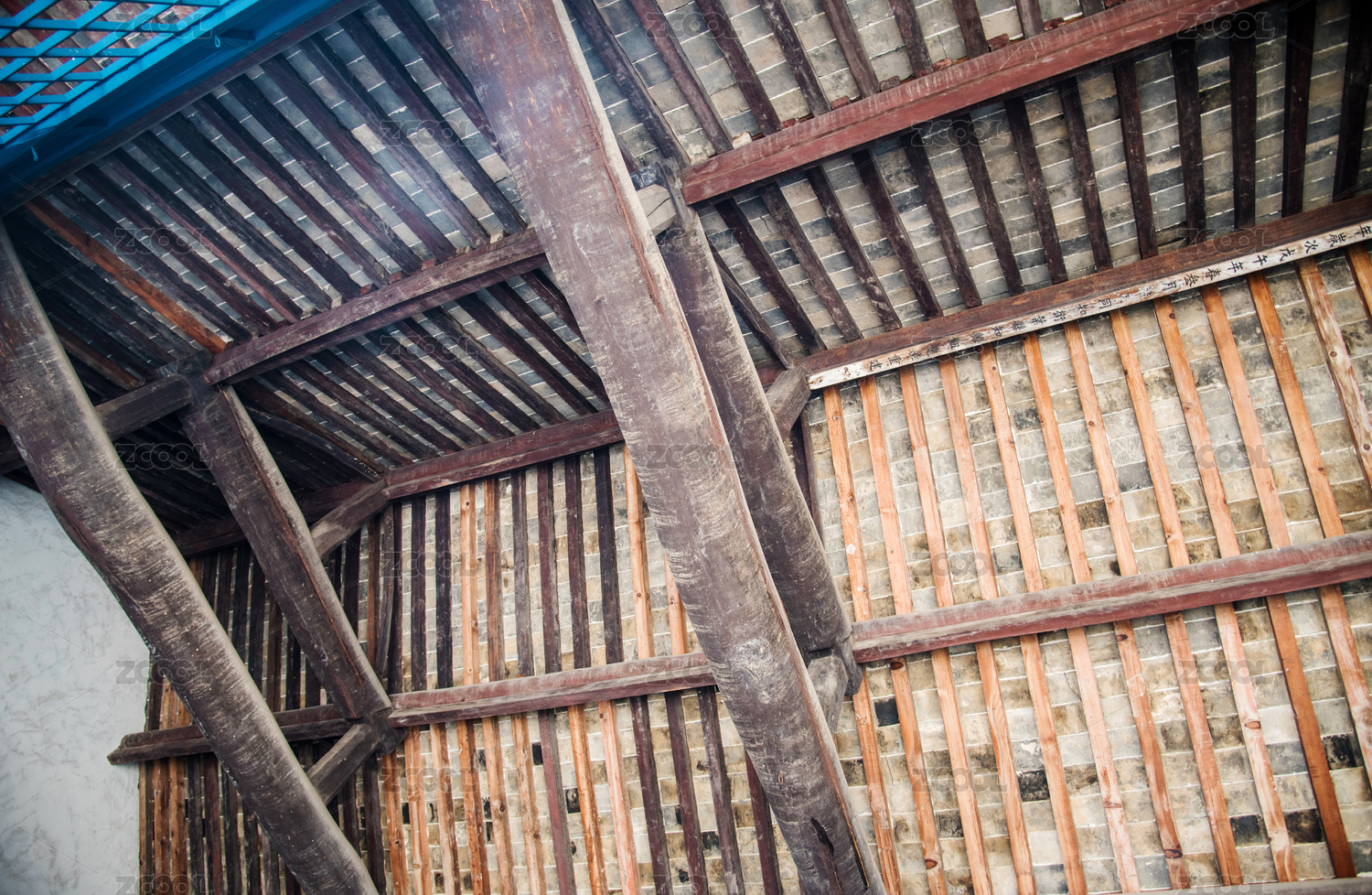 古建筑房屋的屋顶房梁特写