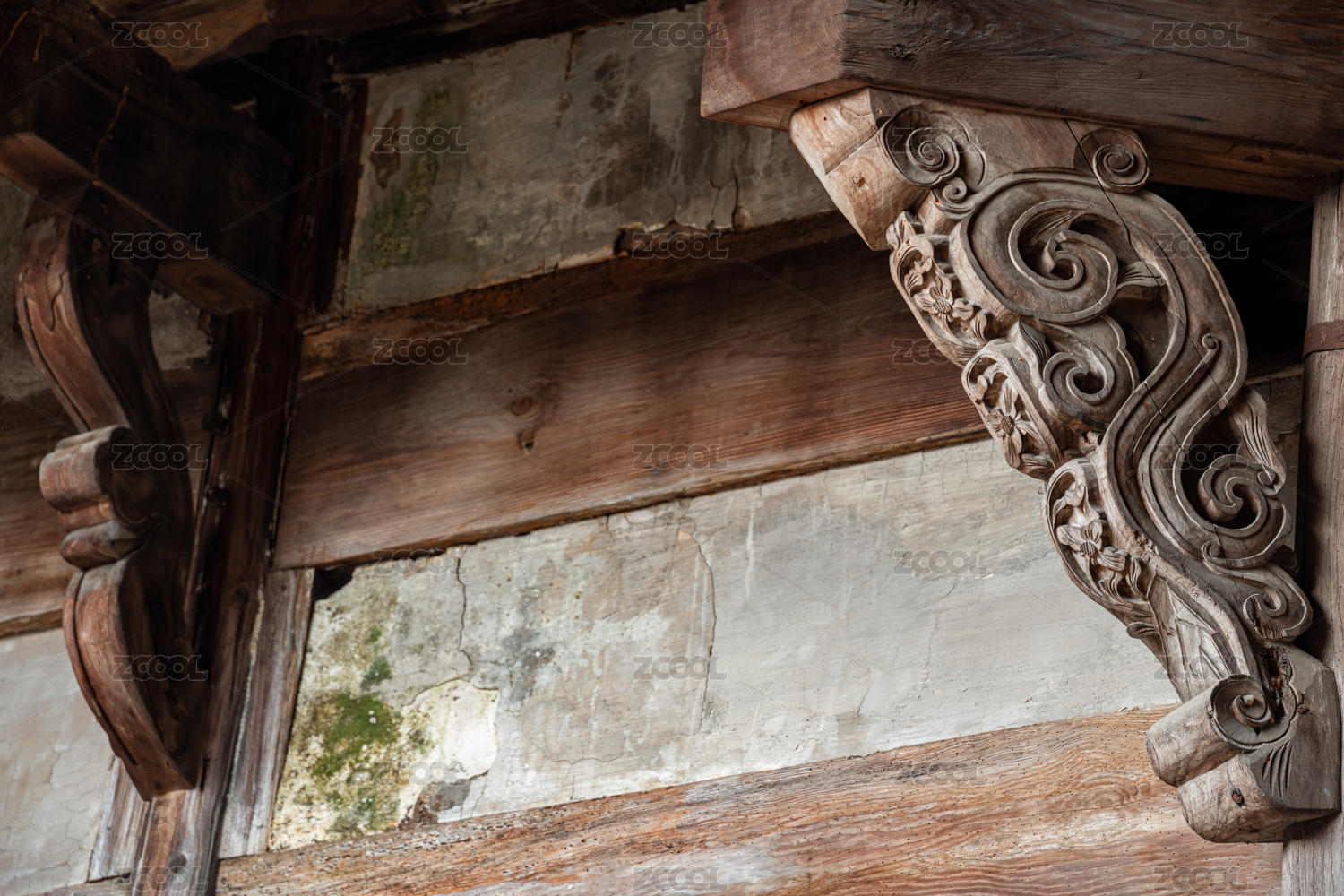江西省鹰潭市竹桥古村居民住宅木雕斗拱装饰建筑景观