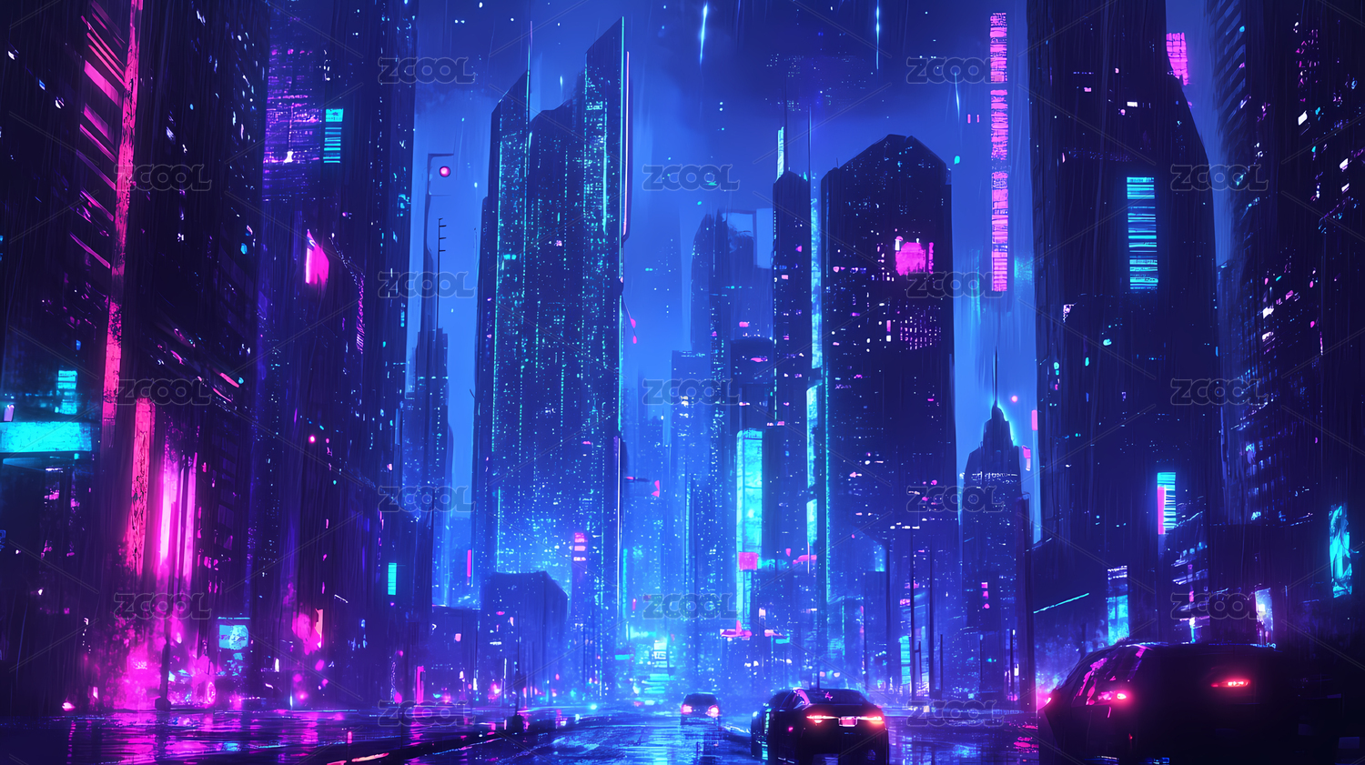 插画,赛博朋克,科技,城市,未来,建筑,高楼,大厦,夜晚,数字