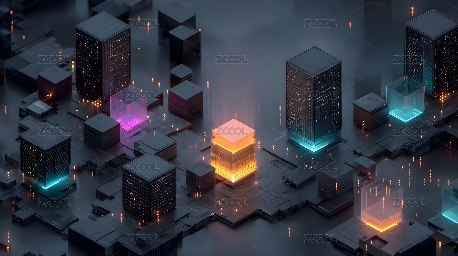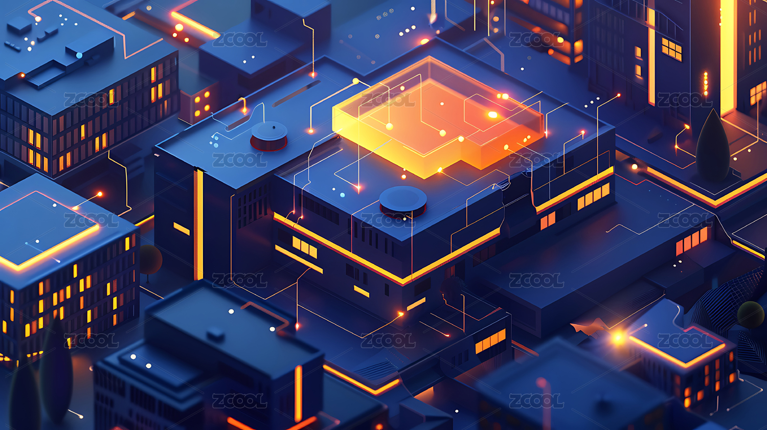 等距视图风格的未来智慧城市模型