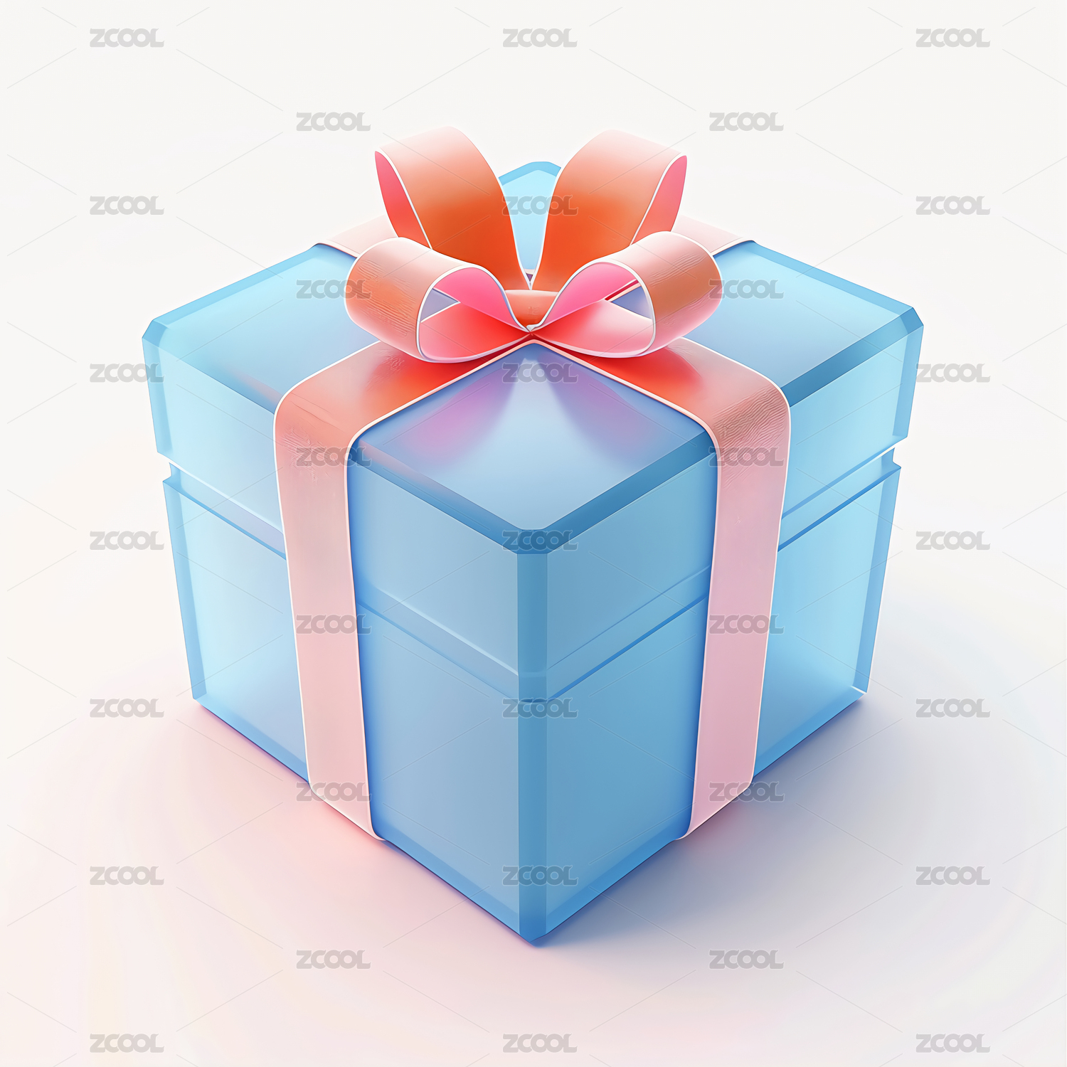 元素,礼品盒,蓝色,透明,磨砂,白色,背景,粉色,束带,礼物