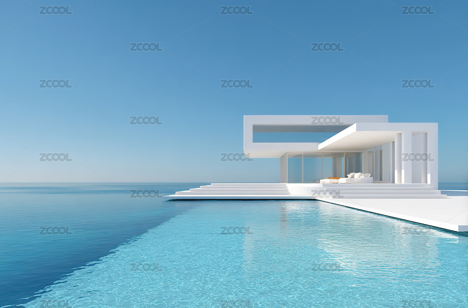 现代海滨别墅与无边泳池