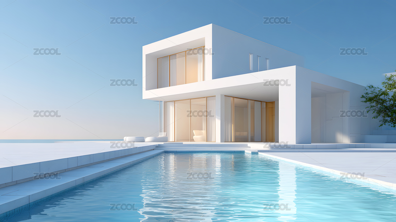 现代极简海景别墅酒店背景
