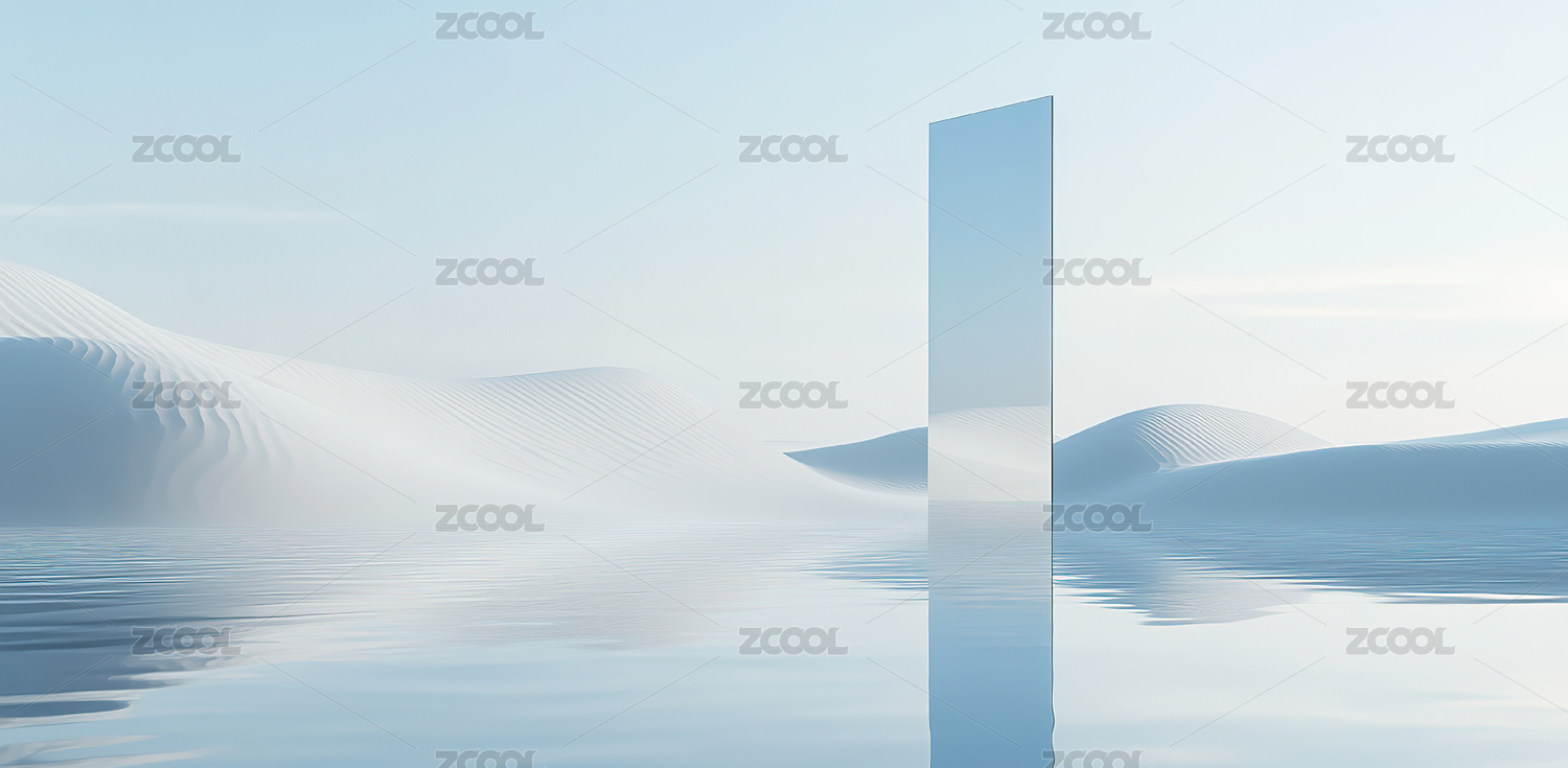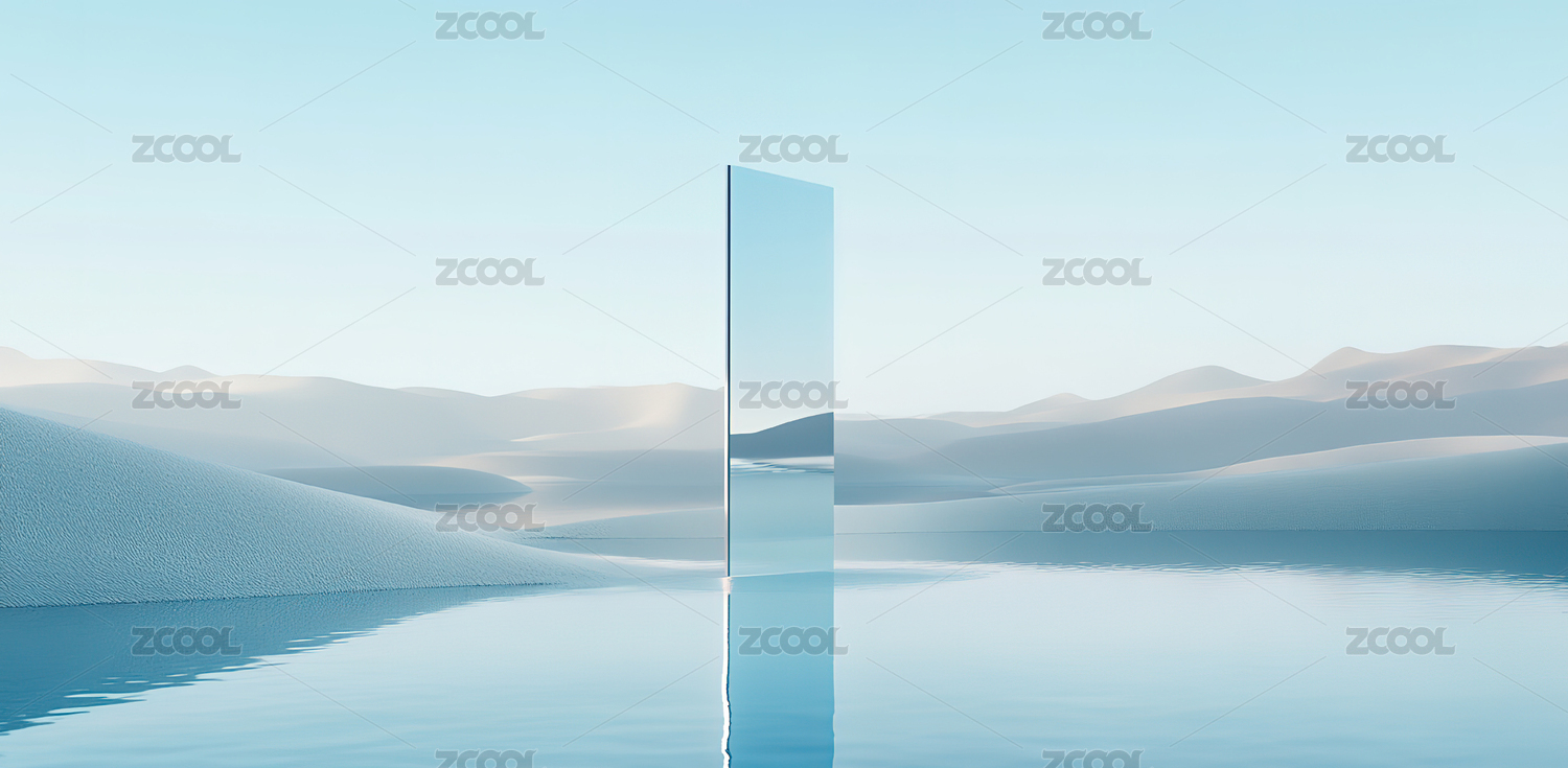 3D蓝色沙漠镜子水面三维空间场景