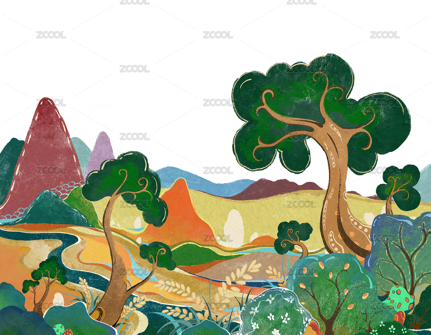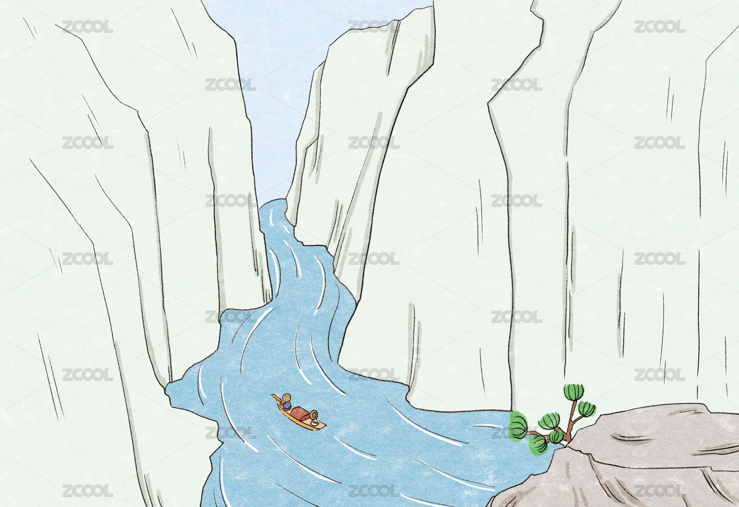 中国传统中国风抽象山峰参天松树诗意水墨画