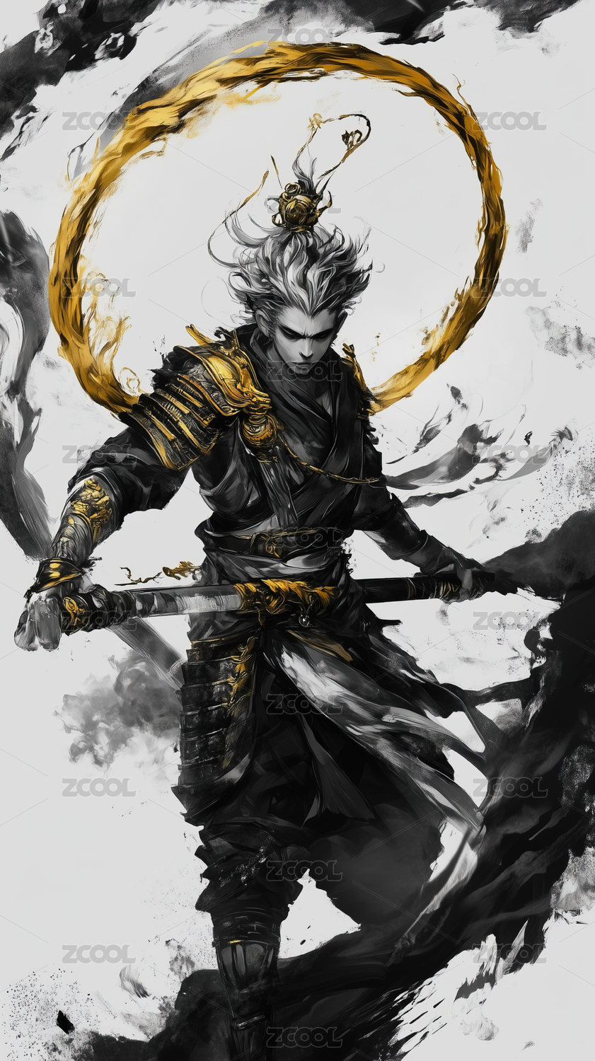 AIGC202407,中国风,国潮风,插画,水墨画,孙悟空