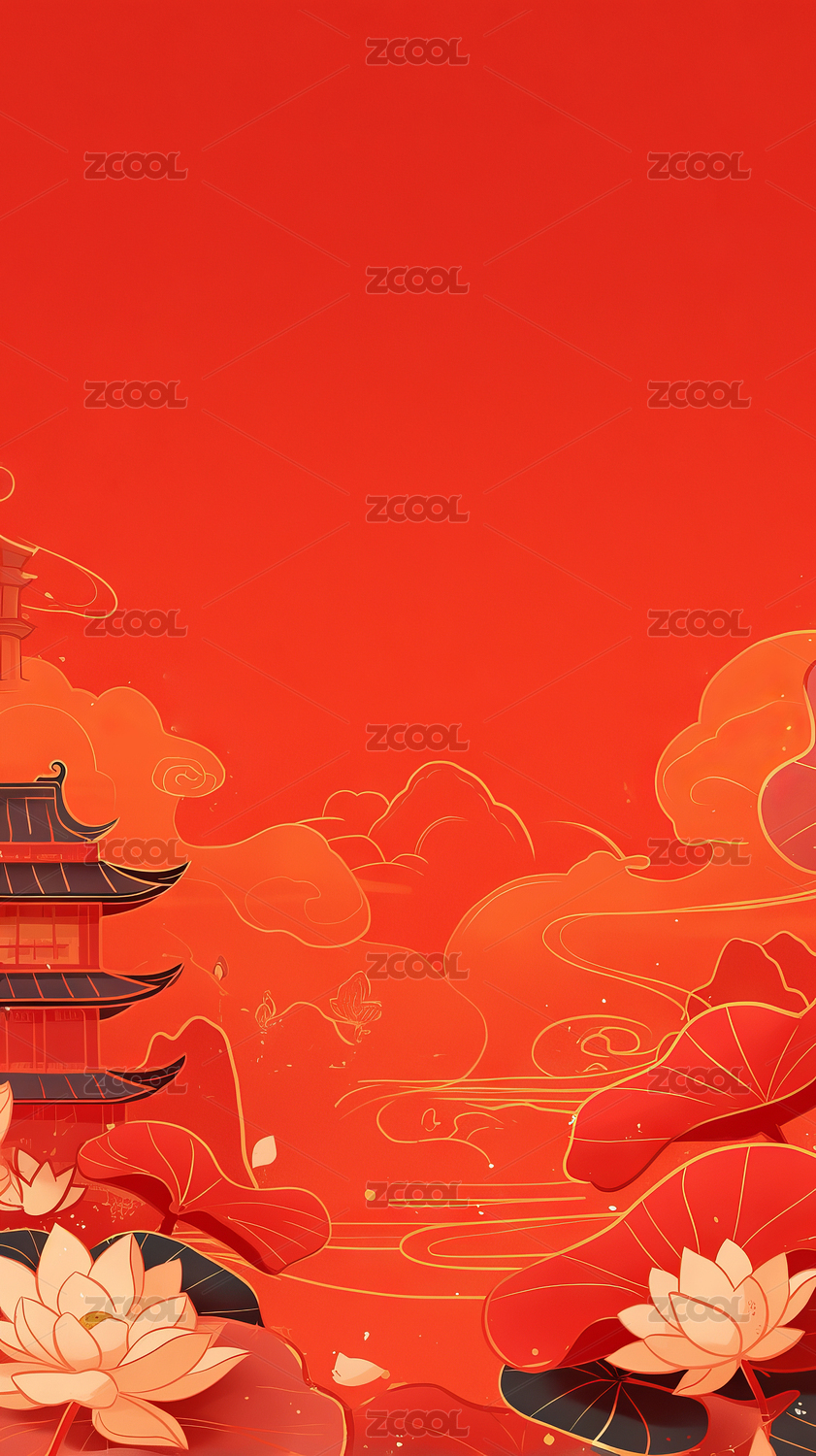红色中式建筑背景