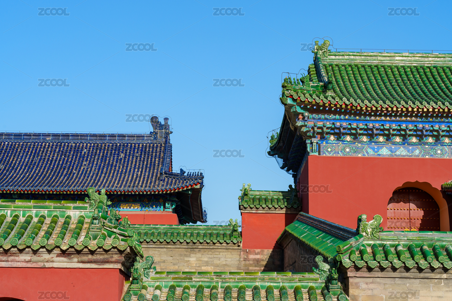 红墙绿瓦宫殿飞檐