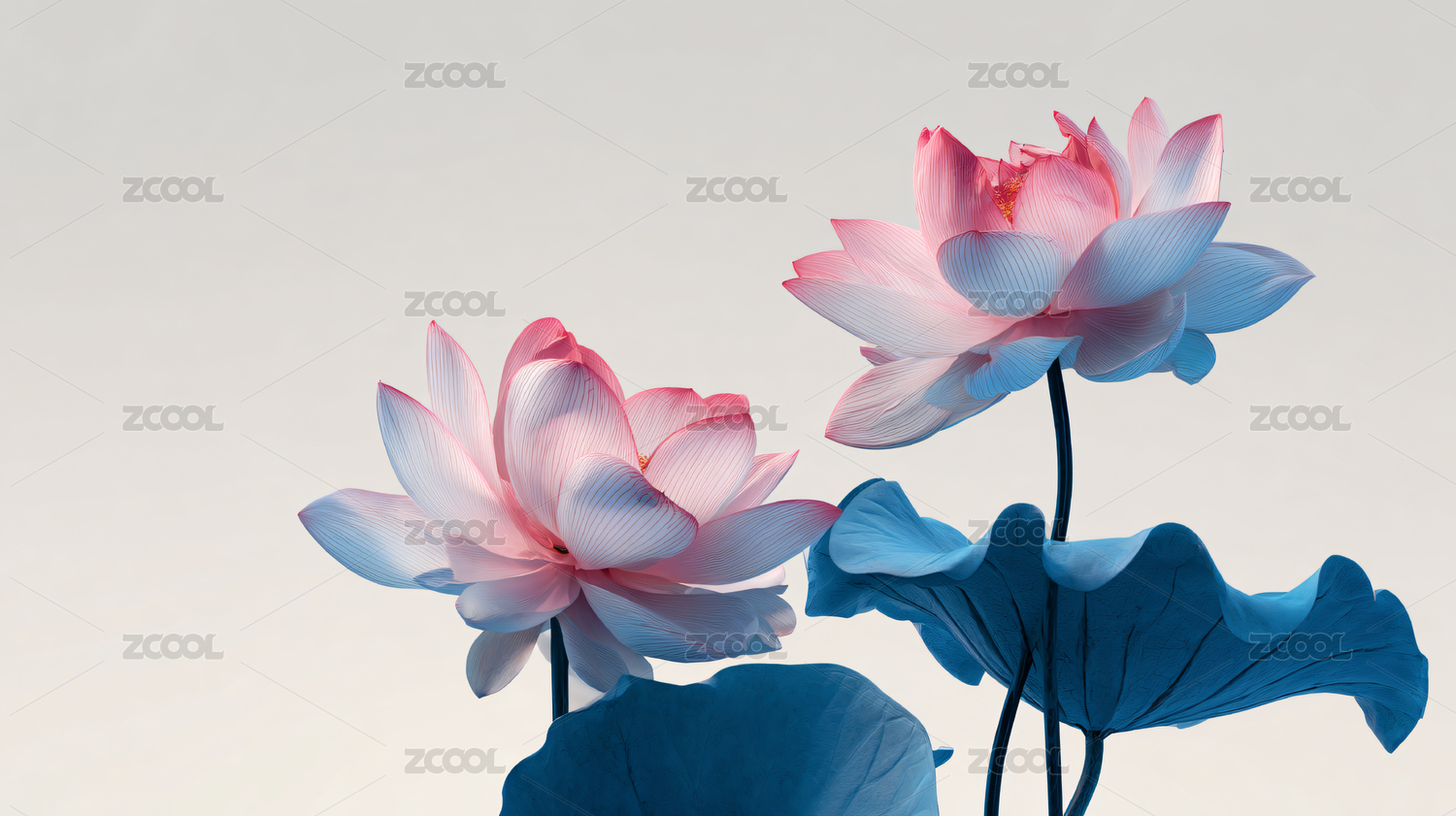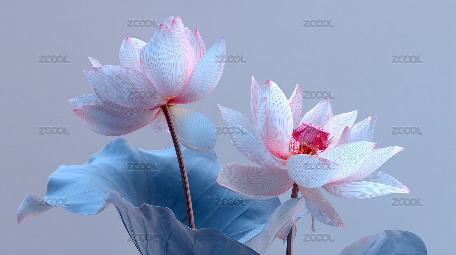 粉蓝荷花清新雅致