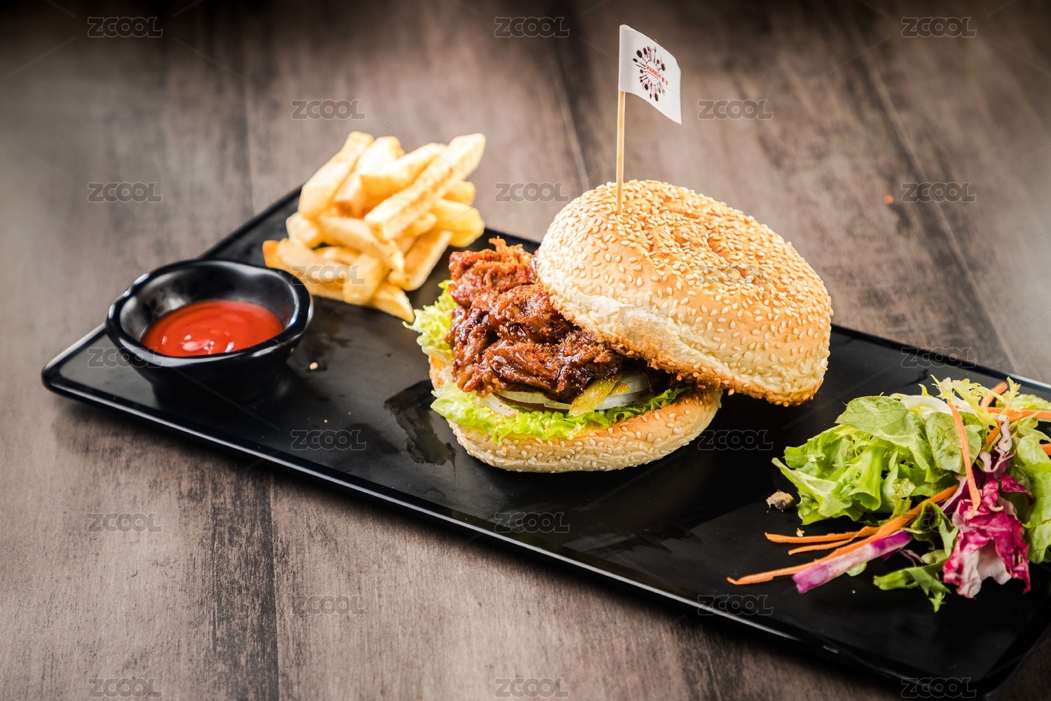 小点心,炊具,碟,成分,点菜,汉堡,薯条,番茄酱,奶酪,融化