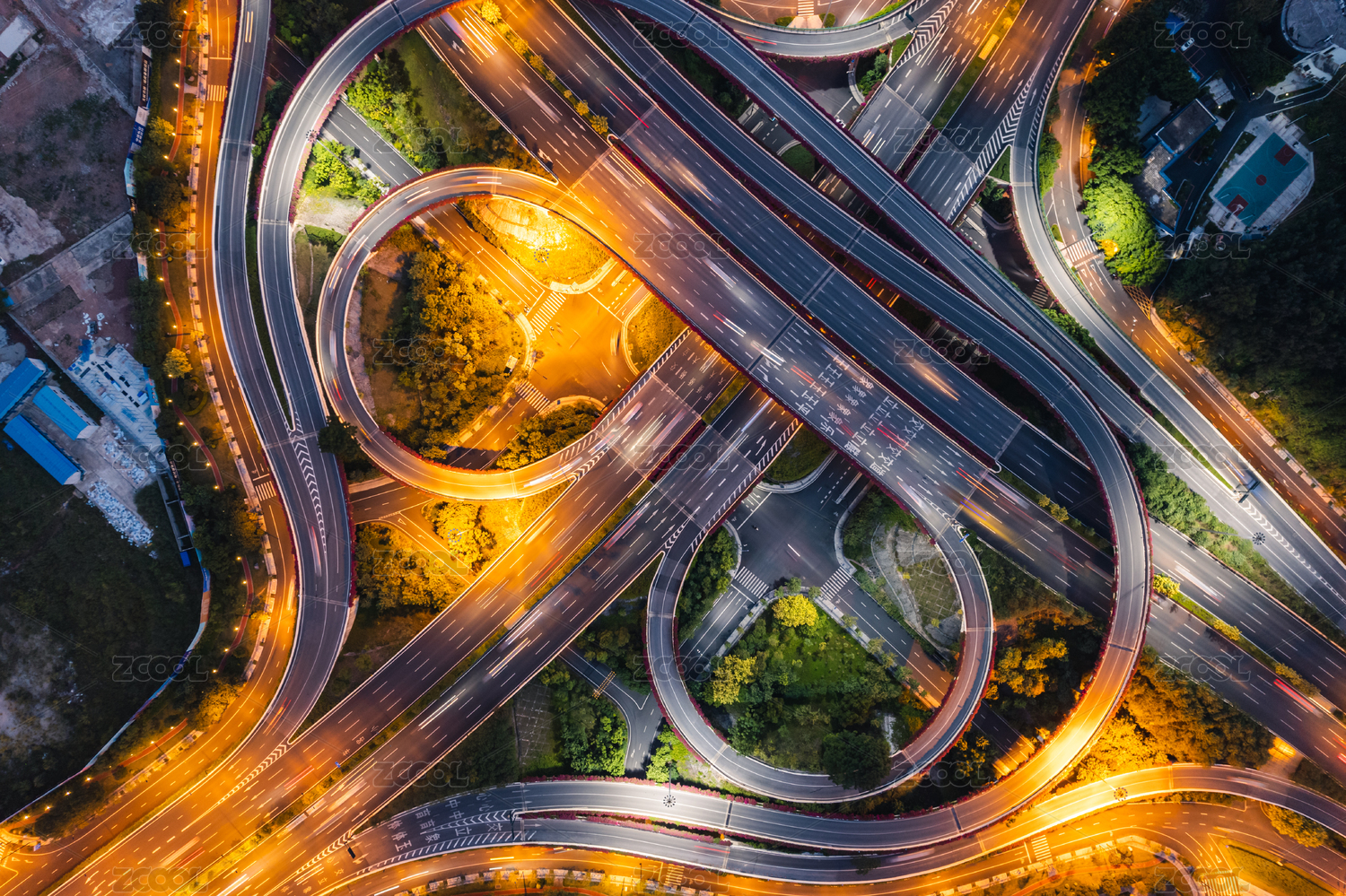 鸟瞰上海城市高架路圆形立交桥交汇点