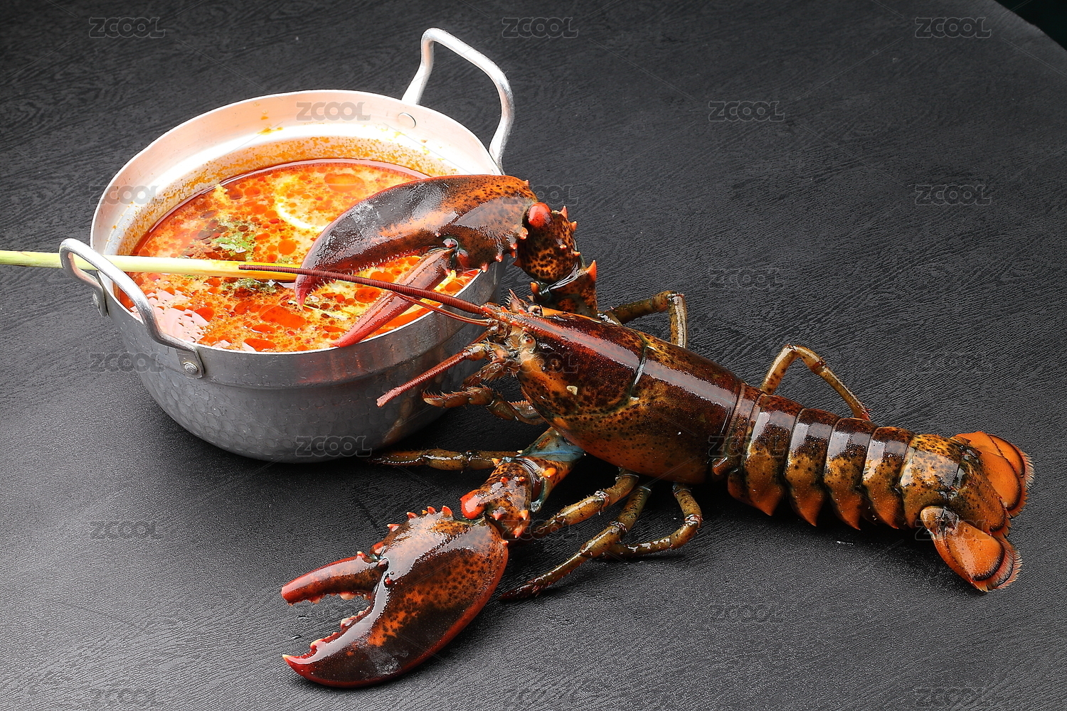 黑底上放着波士顿大龙虾