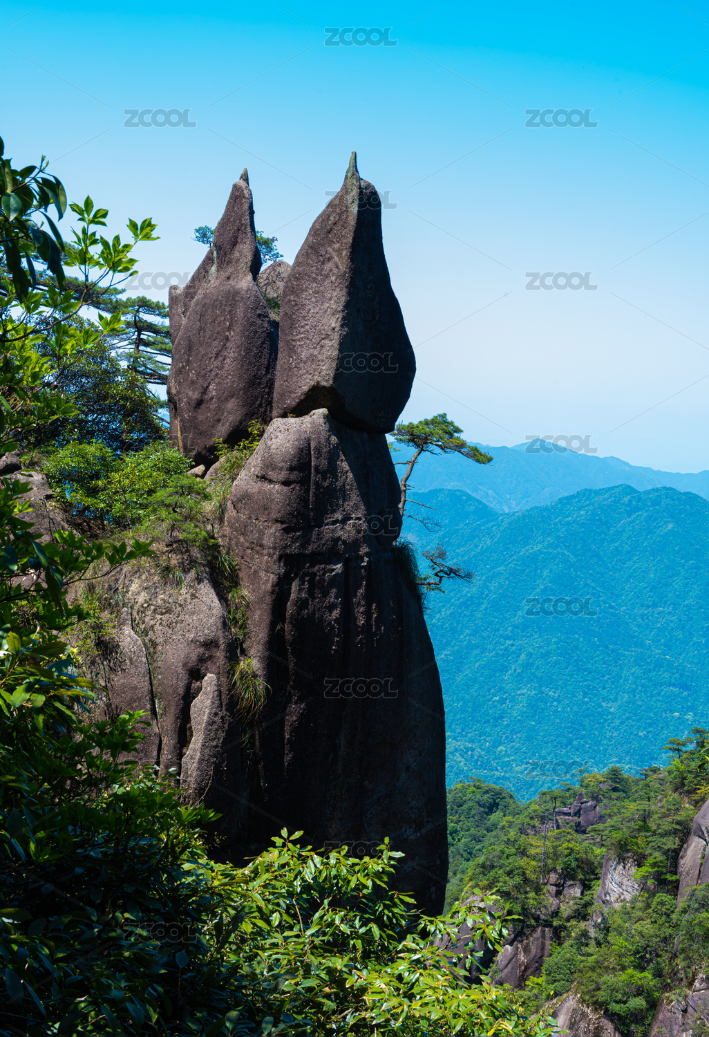 晴好天气下中国江西三清山标志性景观女神峰
