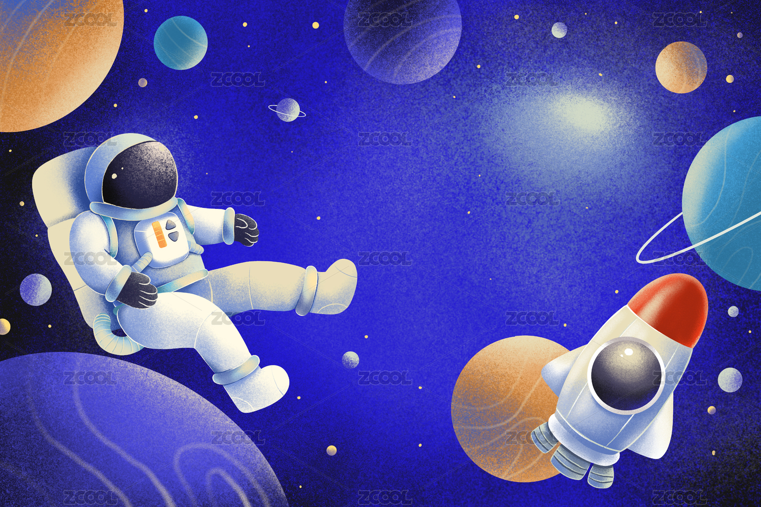 太空宇航员飞船星球插画