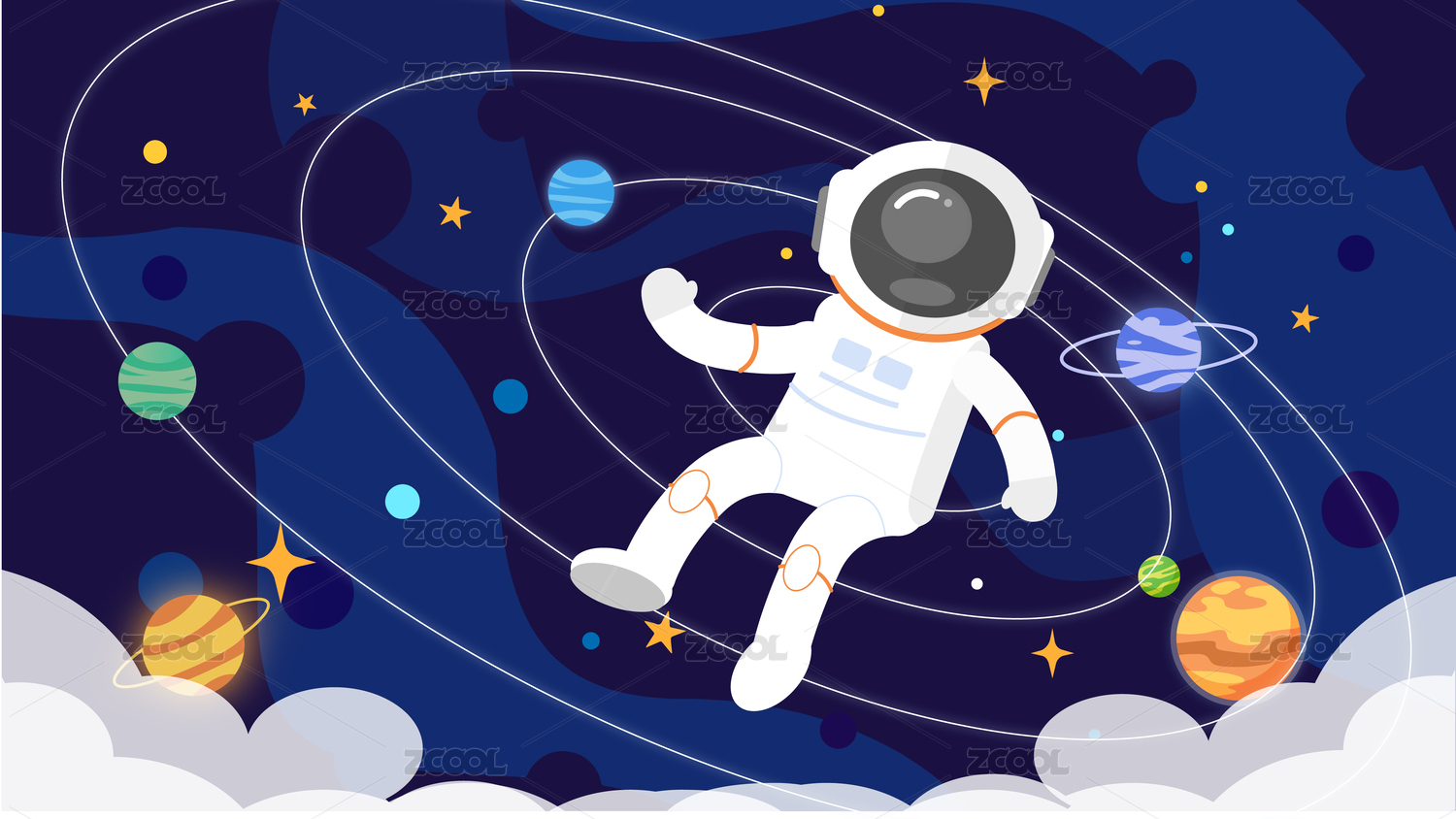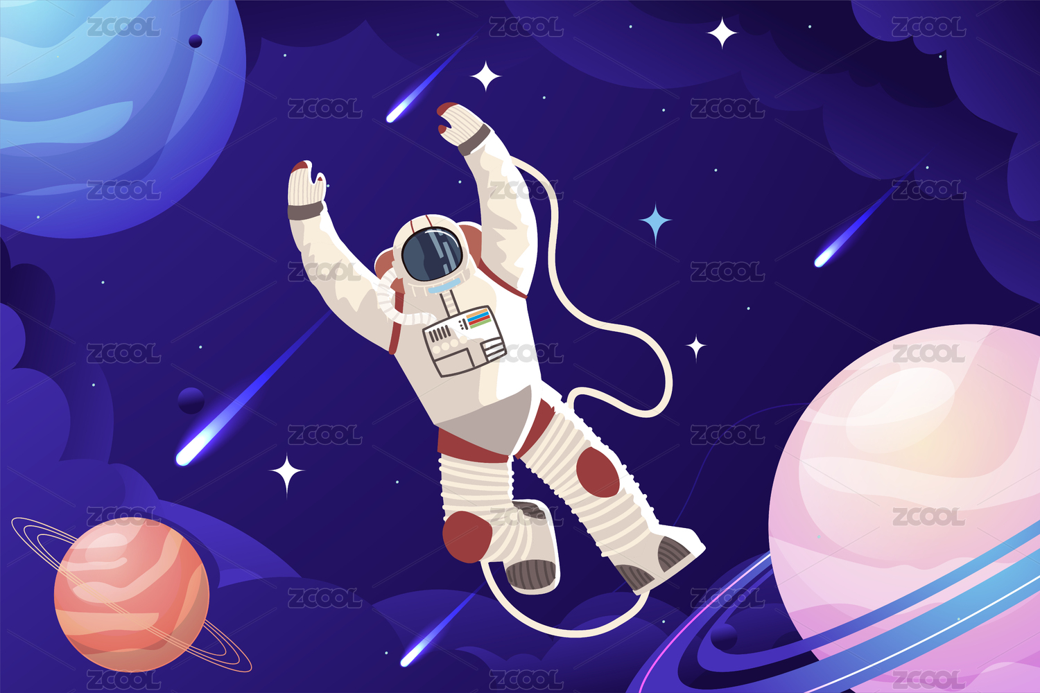 宇航员太空卡通插画