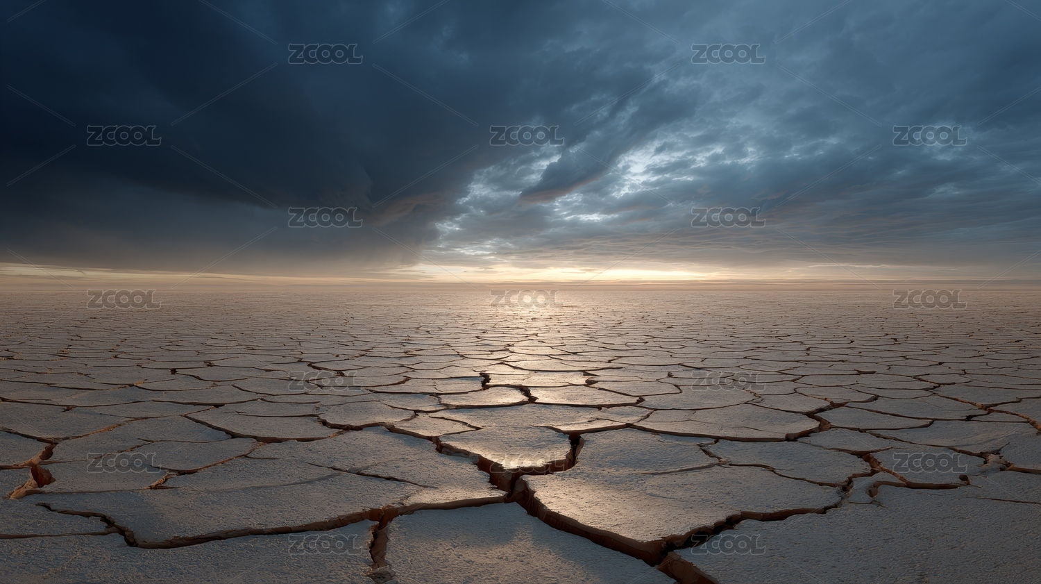 干旱土地龟裂与戏剧性天空景象