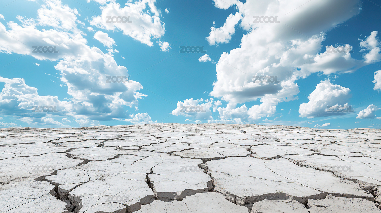 干旱土地龟裂景象与天空云层