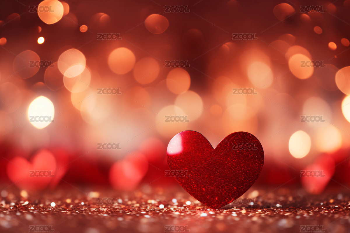 有红色爱心形状和背景虚化光斑的浪漫背景