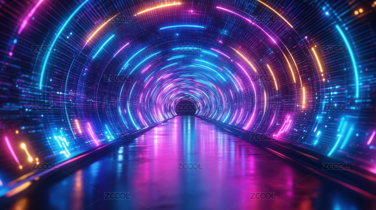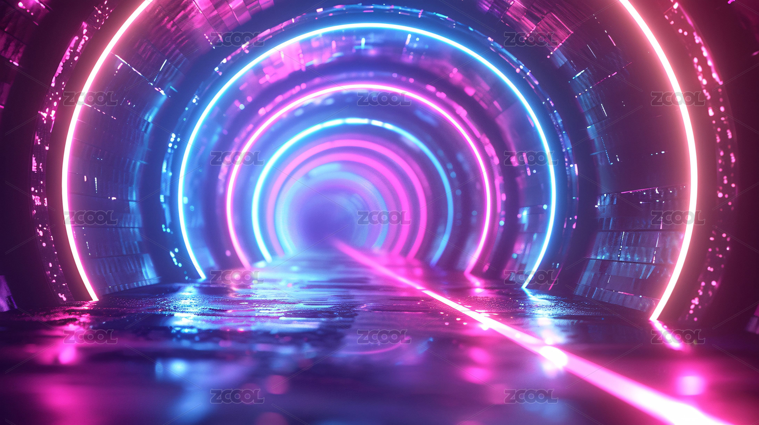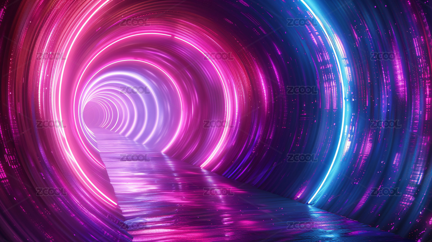 科技感发光光圈背景,蓝色背景上色彩斑斓的