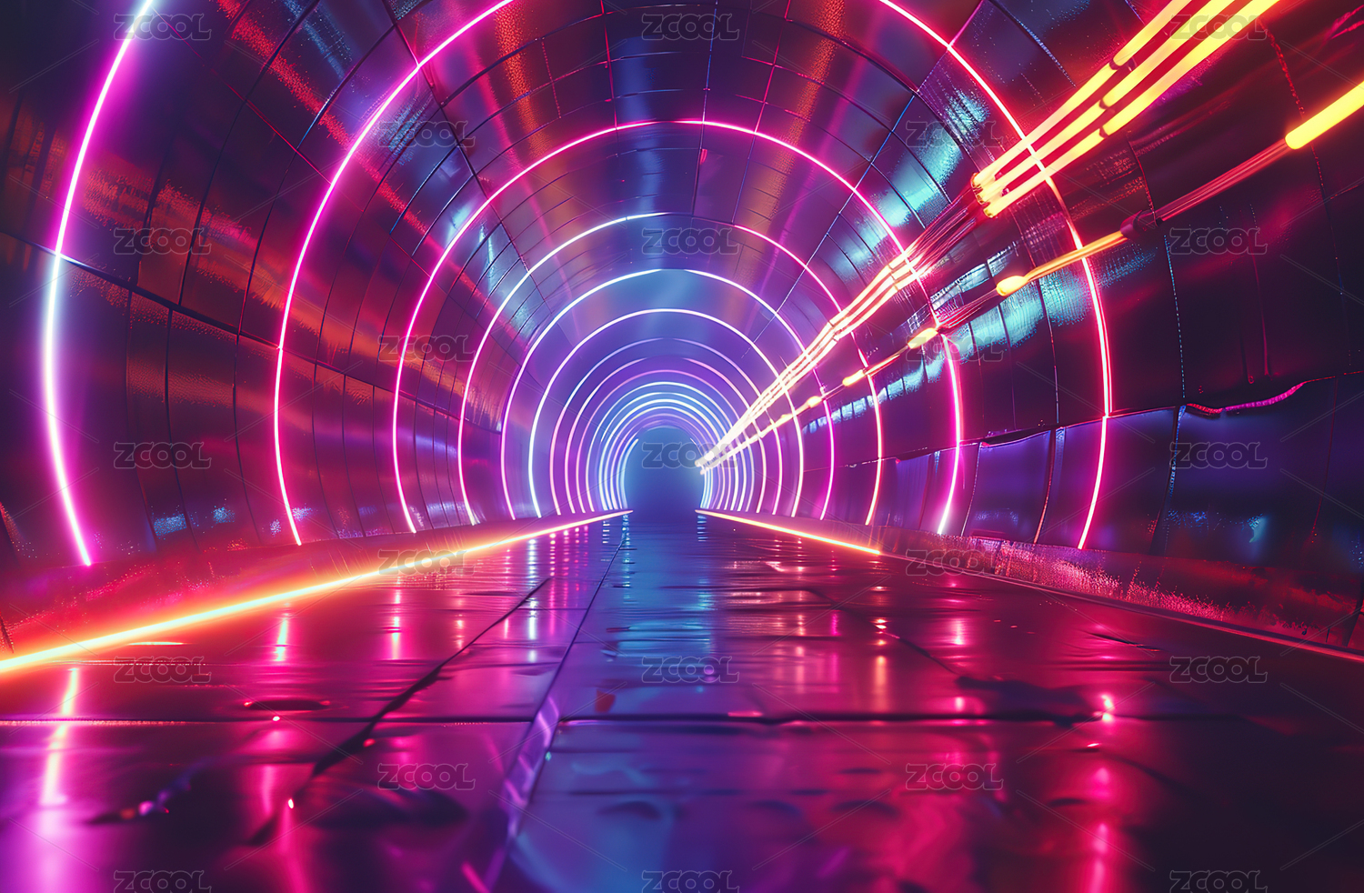 抽象的光线背景,逼真的霓虹灯线条背景插图